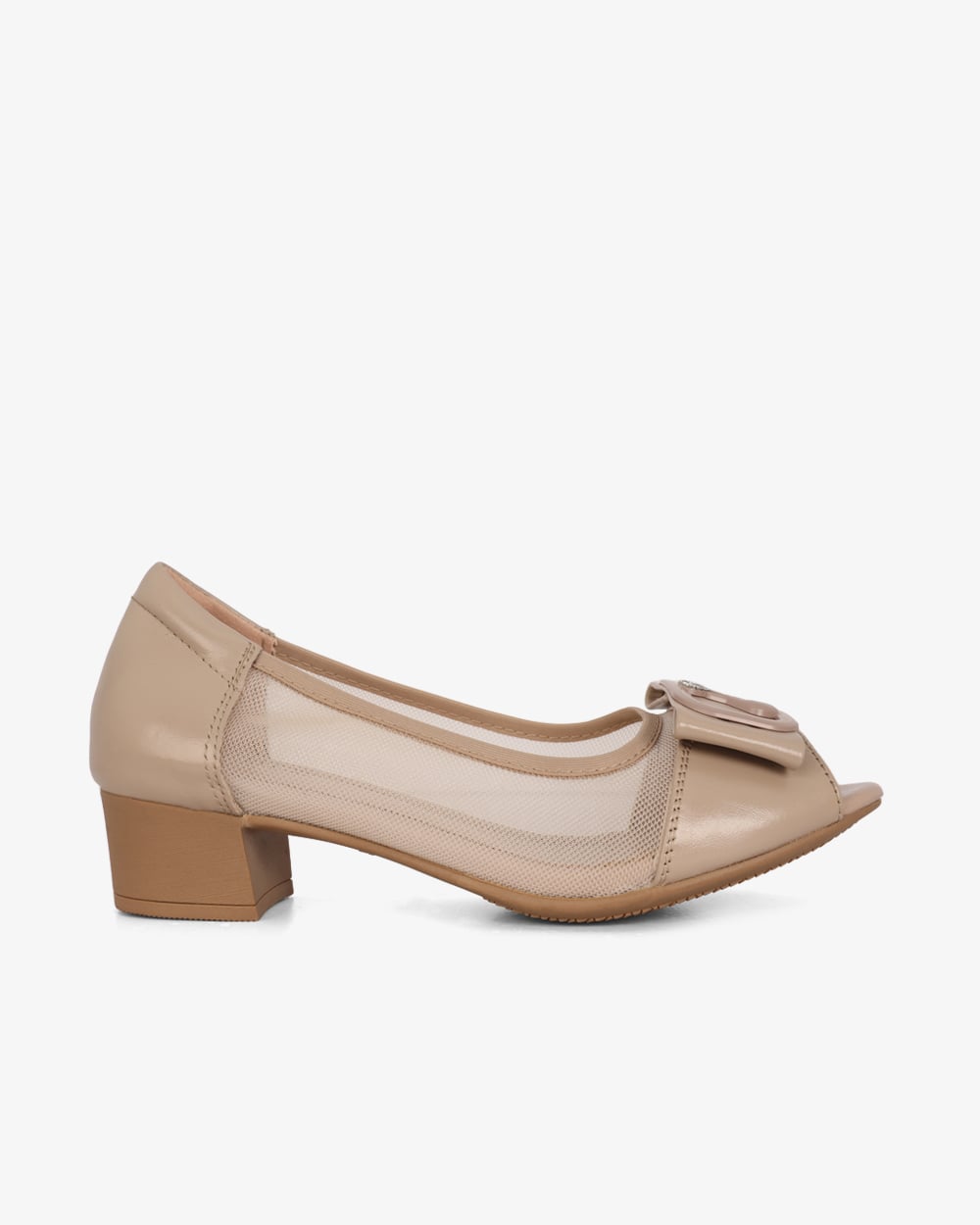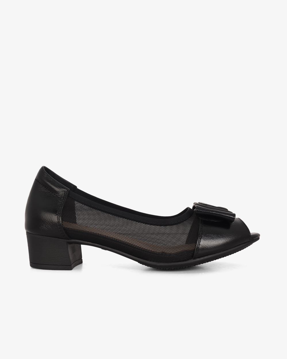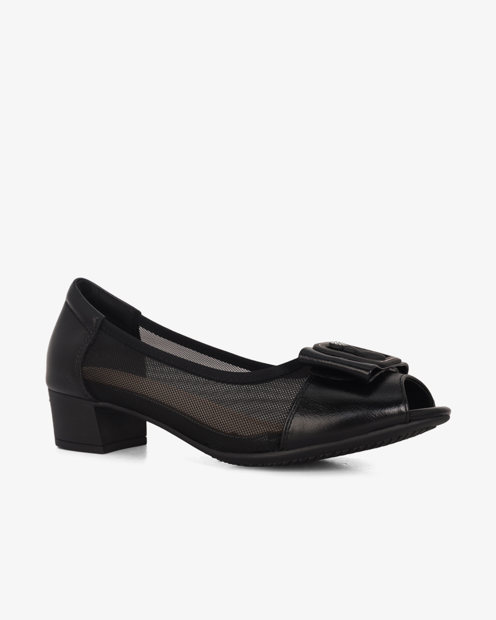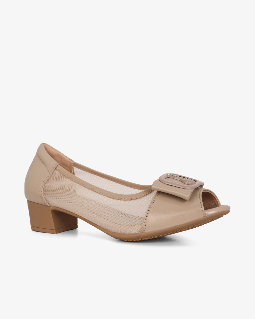 Giày Cao Gót Albee Hở Mũi Phối Lưới Gót Vuông HD0280TQ