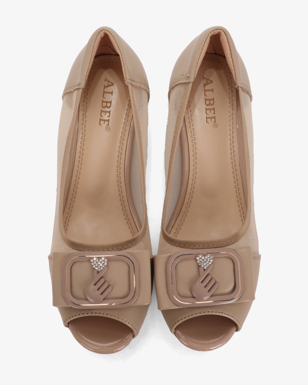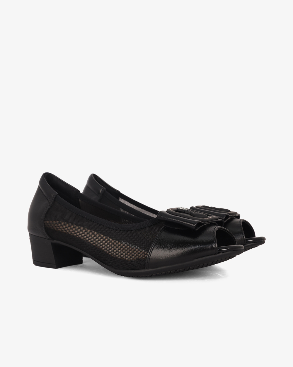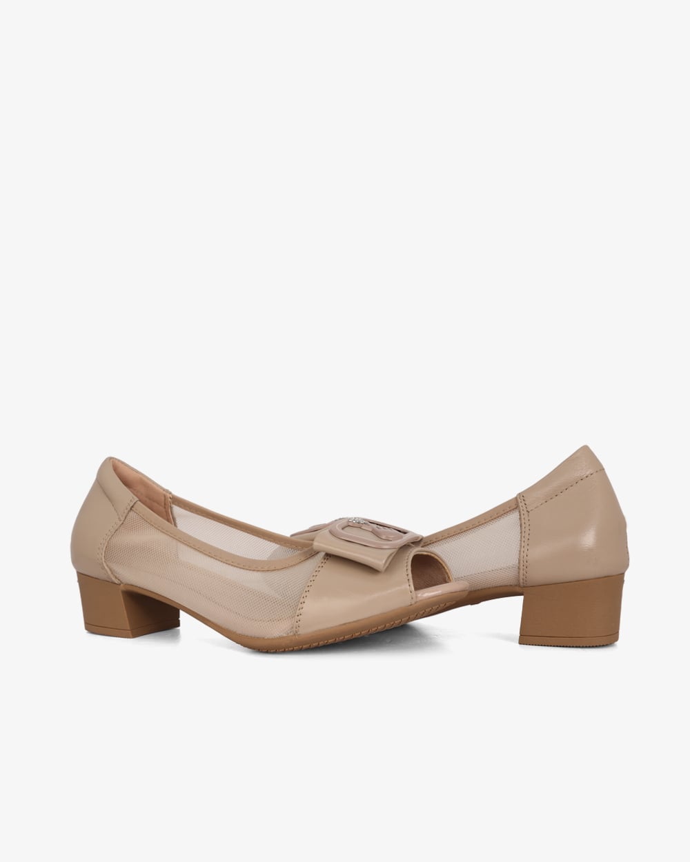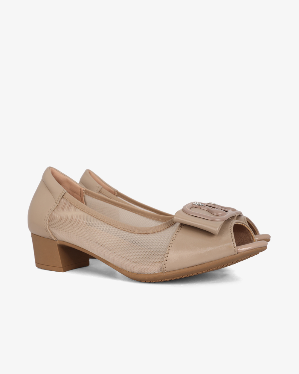 Giày Cao Gót Albee Hở Mũi Phối Lưới Gót Vuông HD0280TQ