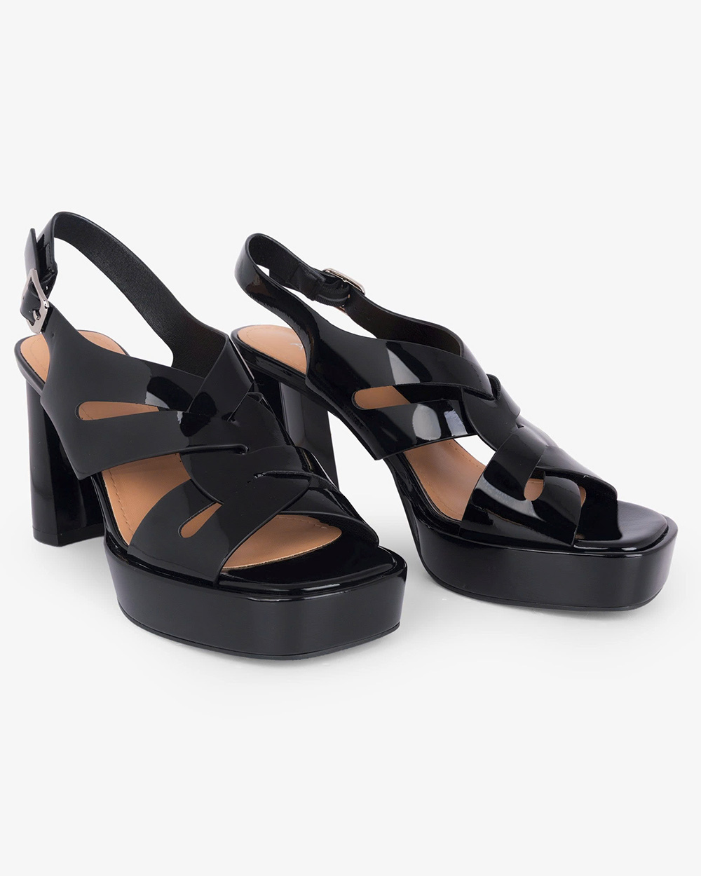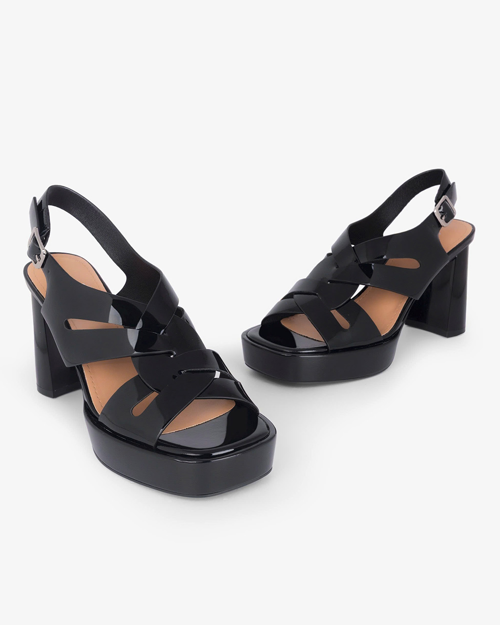Gót cao 8cm dạng trụ vững chắc. Mặt đế có các rãnh chống trơn trượt, giữ chân chắc chắn mà vẫn thoải mái.