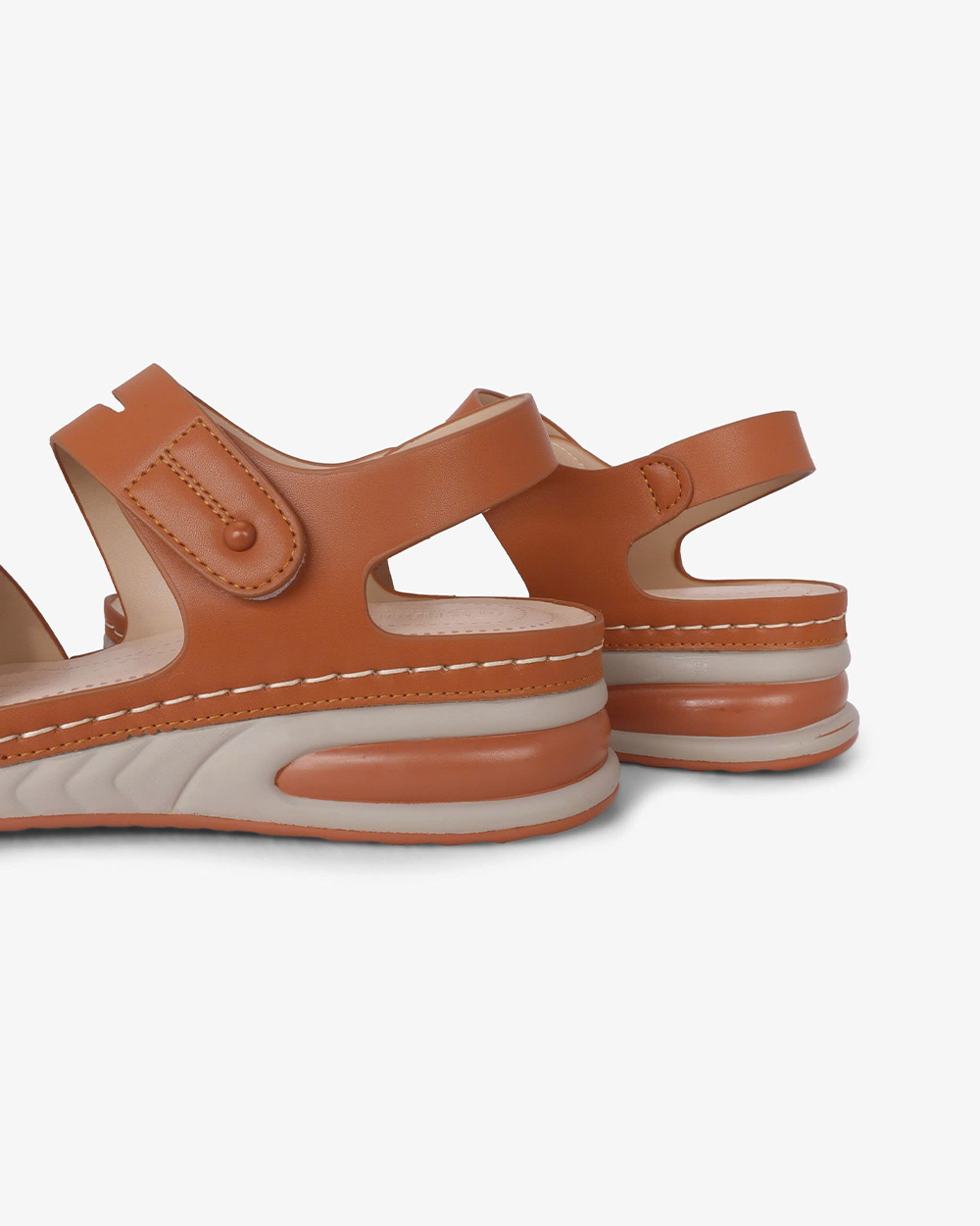 Gót cao 5cm dạng trụ vững chắc. Mặt đế có các rãnh chống trơn trượt, giữ chân chắc chắn mà vẫn thoải mái.