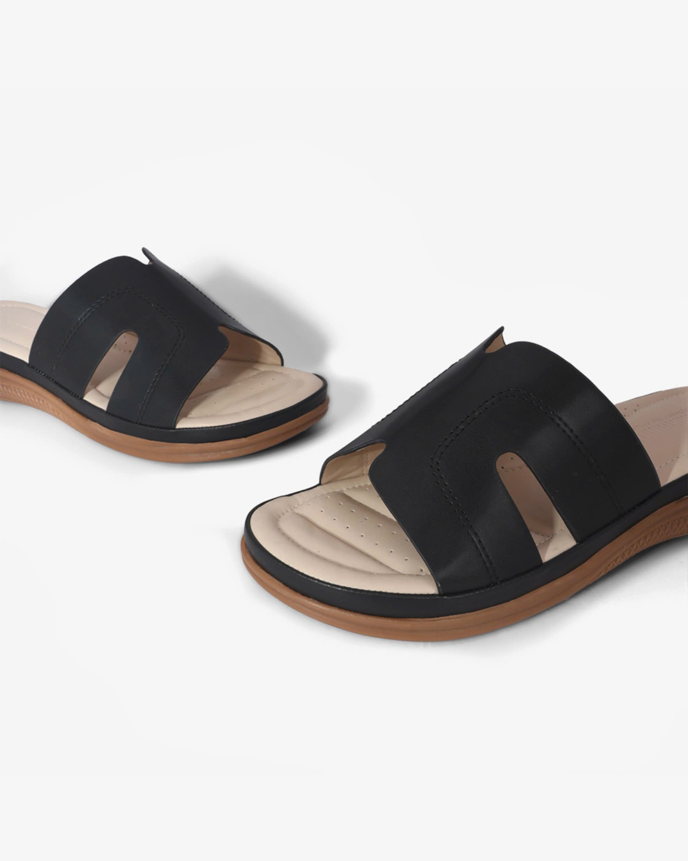 Đôi dép không có quai sau, giúp dễ dàng xỏ vào và tháo ra, rất tiện lợi.