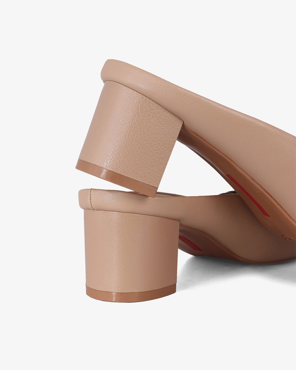 Gót cao 5cm dạng trụ vững chắc. Mặt đế có các rãnh chống trơn trượt, giữ chân chắc chắn mà vẫn thoải mái.