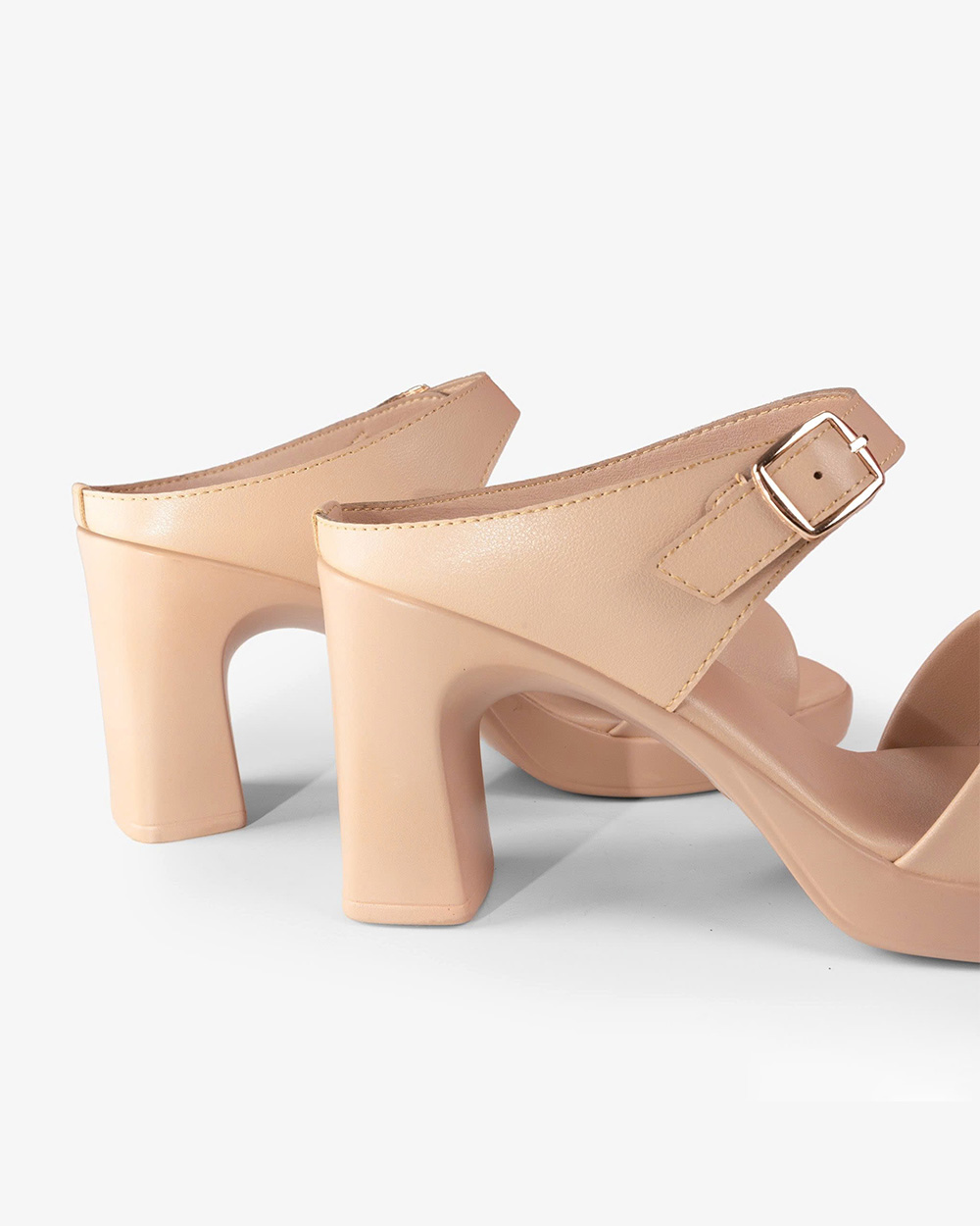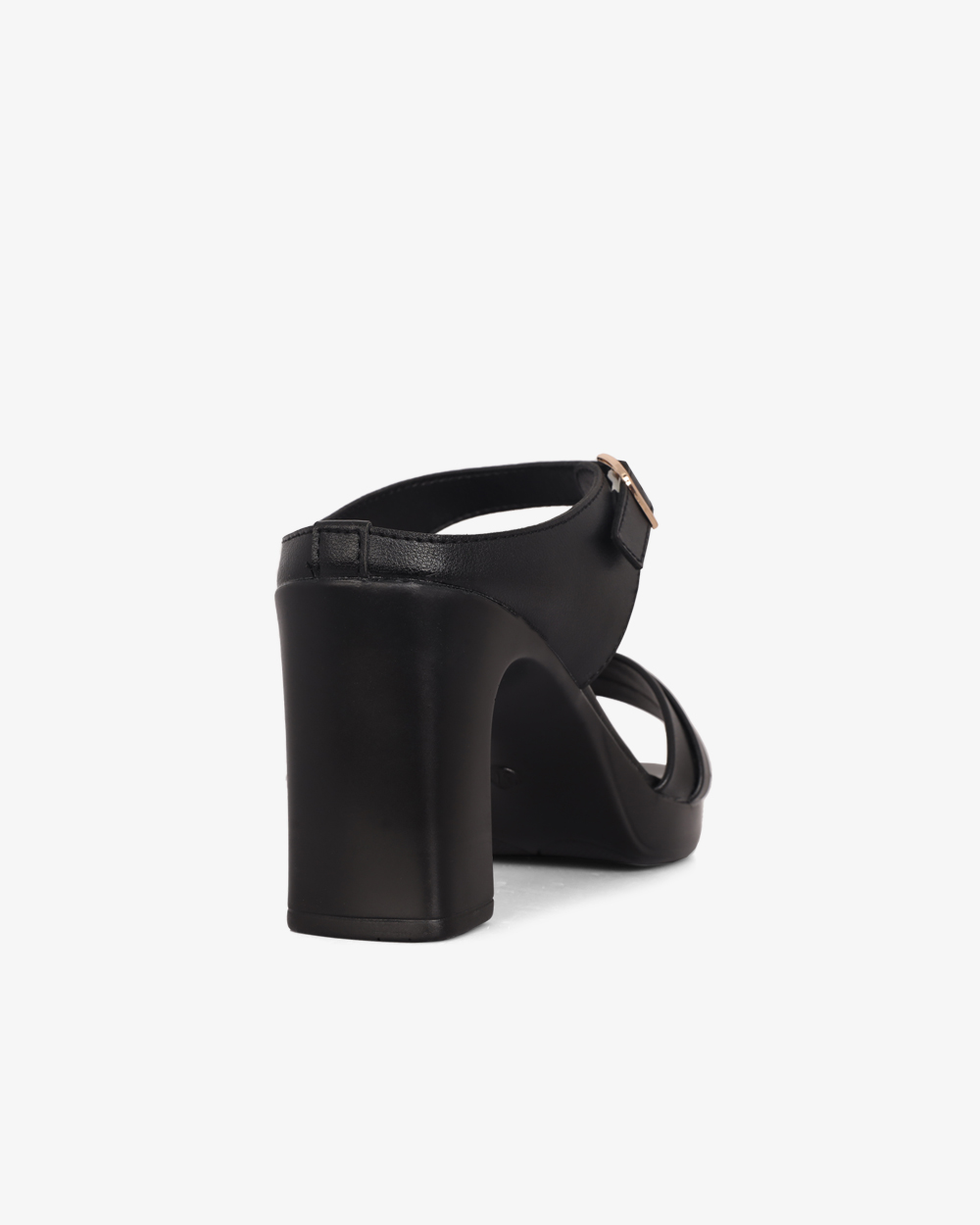 Gót cao 8cm dạng trụ vững chắc. Mặt đế có các rãnh chống trơn trượt, giữ chân chắc chắn mà vẫn thoải mái.