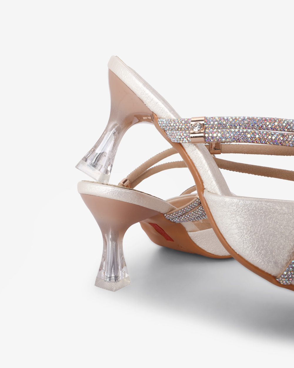 Gót cao nhẹ 6 cm dạng trụ vững chắc. Mặt đế có các rãnh chống trơn trượt, giữ chân chắc chắn mà vẫn thoải mái.