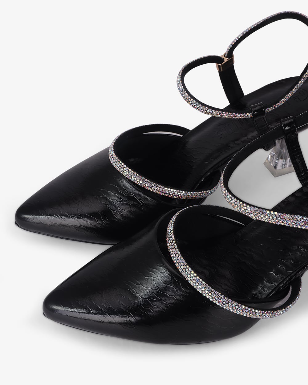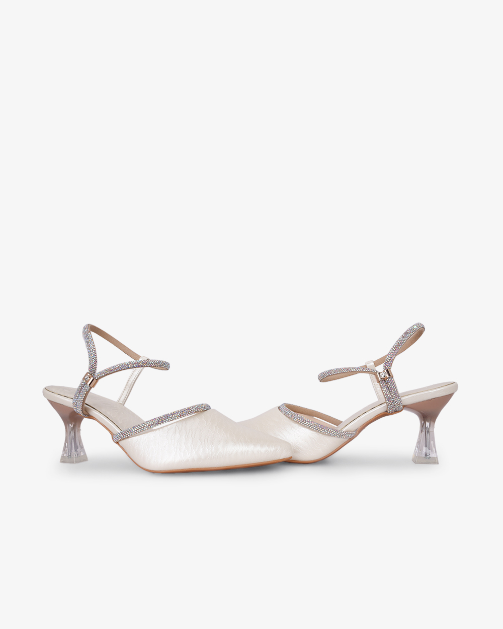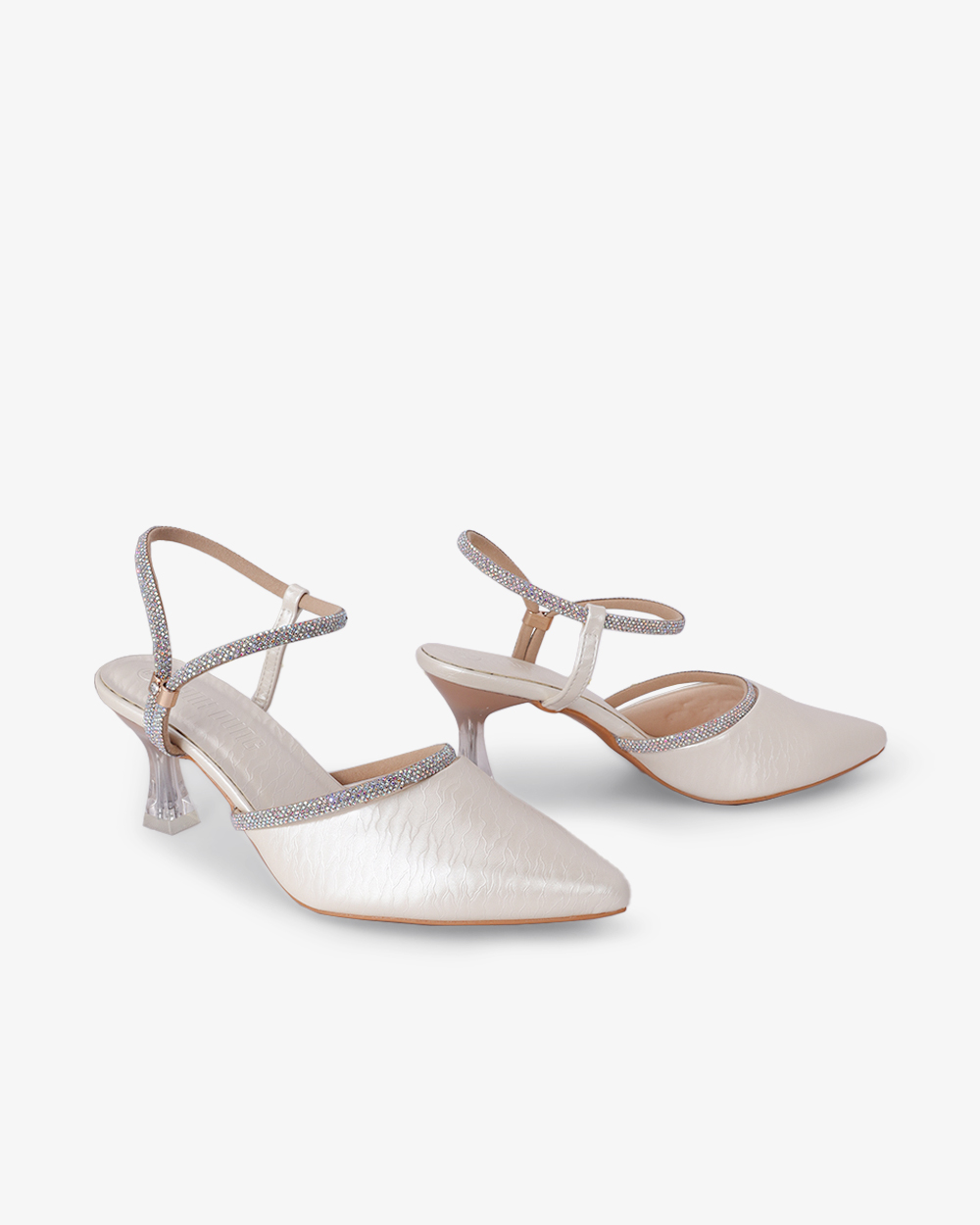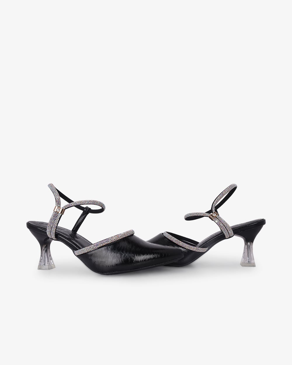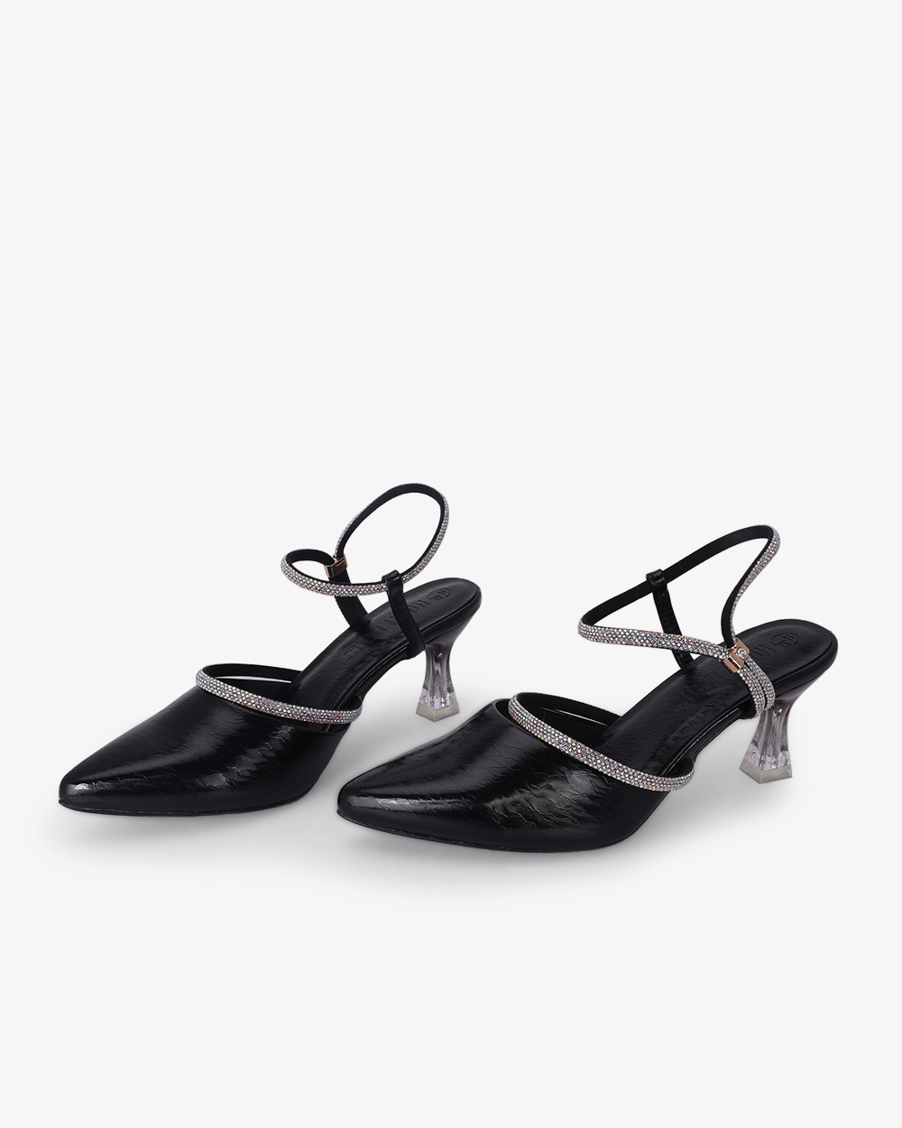 Gót cao nhẹ 6 cm dạng trụ vững chắc. Mặt đế có các rãnh chống trơn trượt, giữ chân chắc chắn mà vẫn thoải mái.