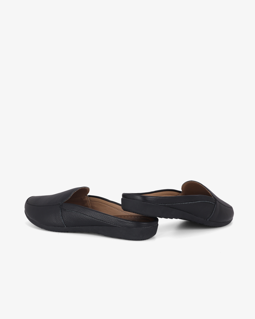 Đôi dép không có quai sau, giúp dễ dàng xỏ vào và tháo ra, rất tiện lợi mà vẫn giữ được phong cách thanh lịch.