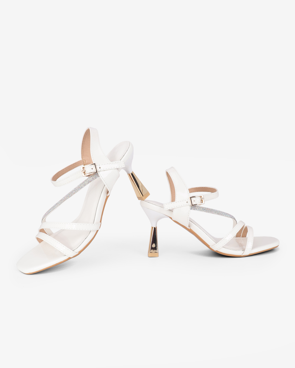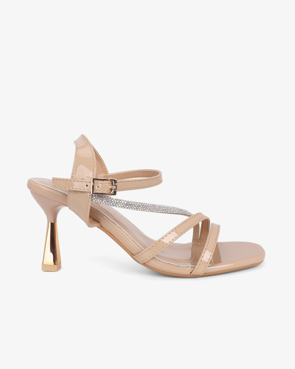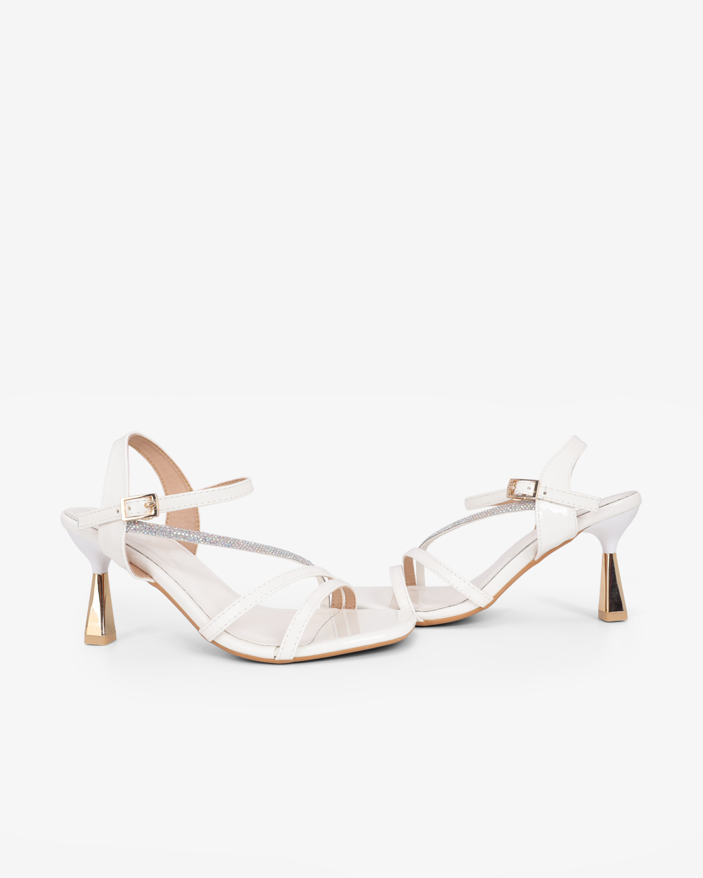 Đôi sandal cao gót với kiểu dáng nhẹ nhàng, nữ tính, thiết kế quai chéo sang trọng, thích hợp cho những ai yêu thích phong cách diệu dàng, điệu đà