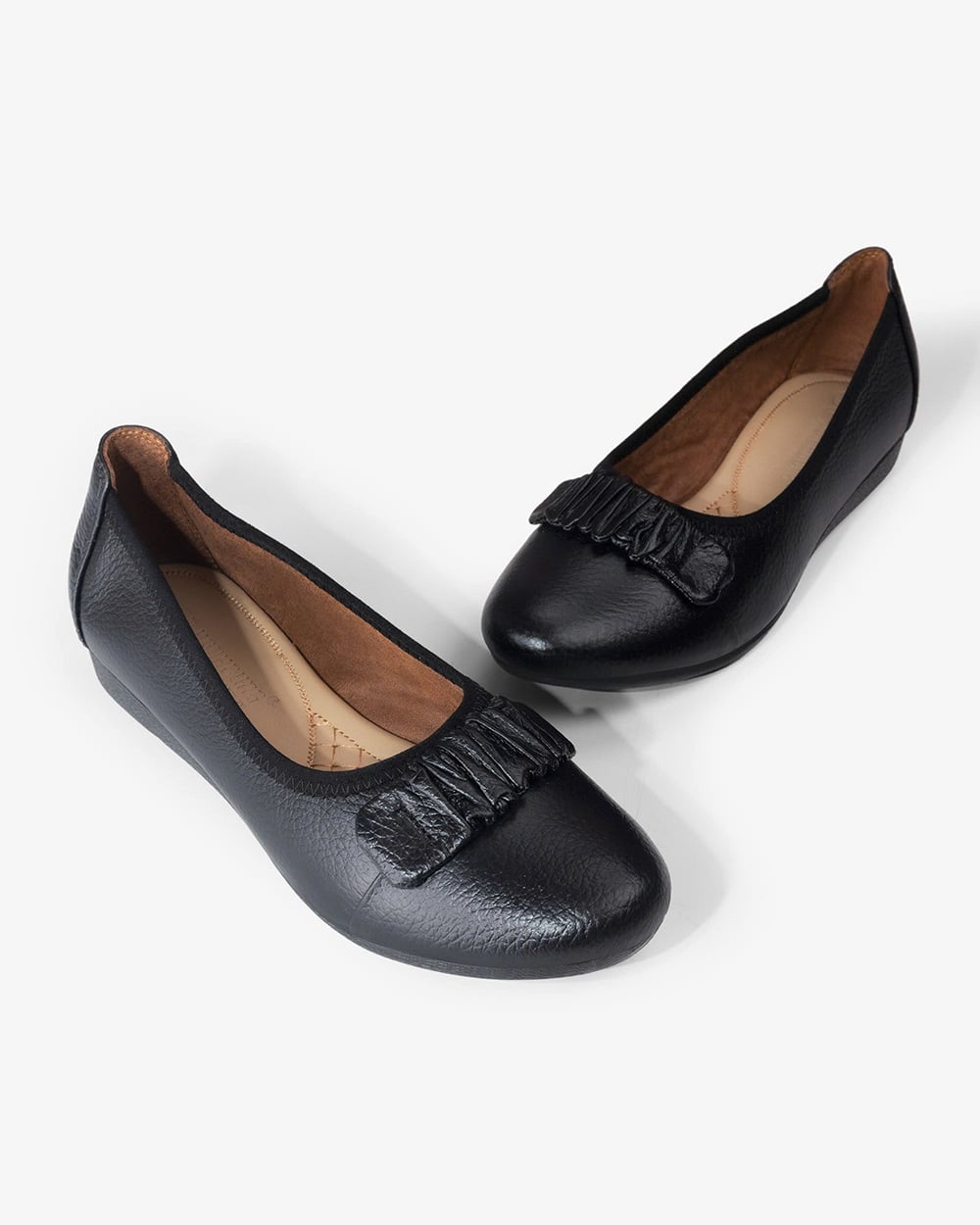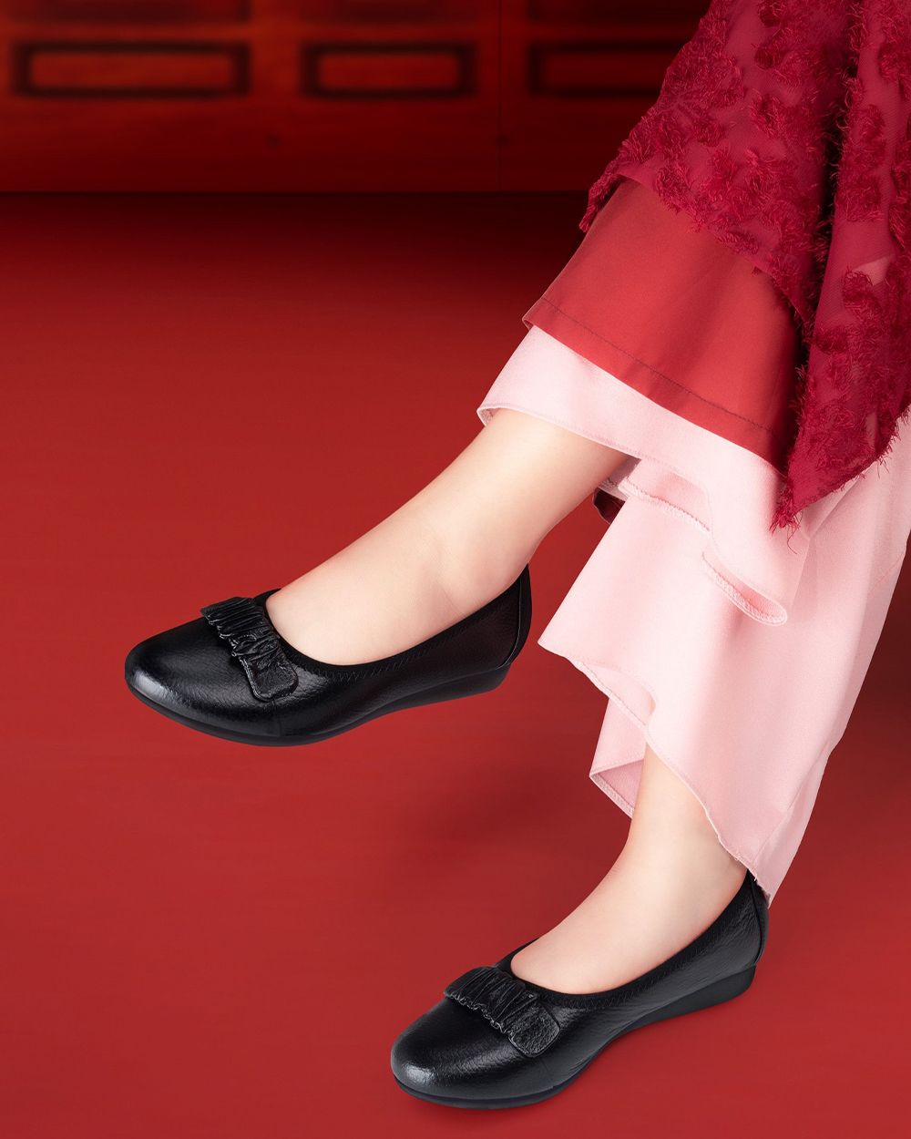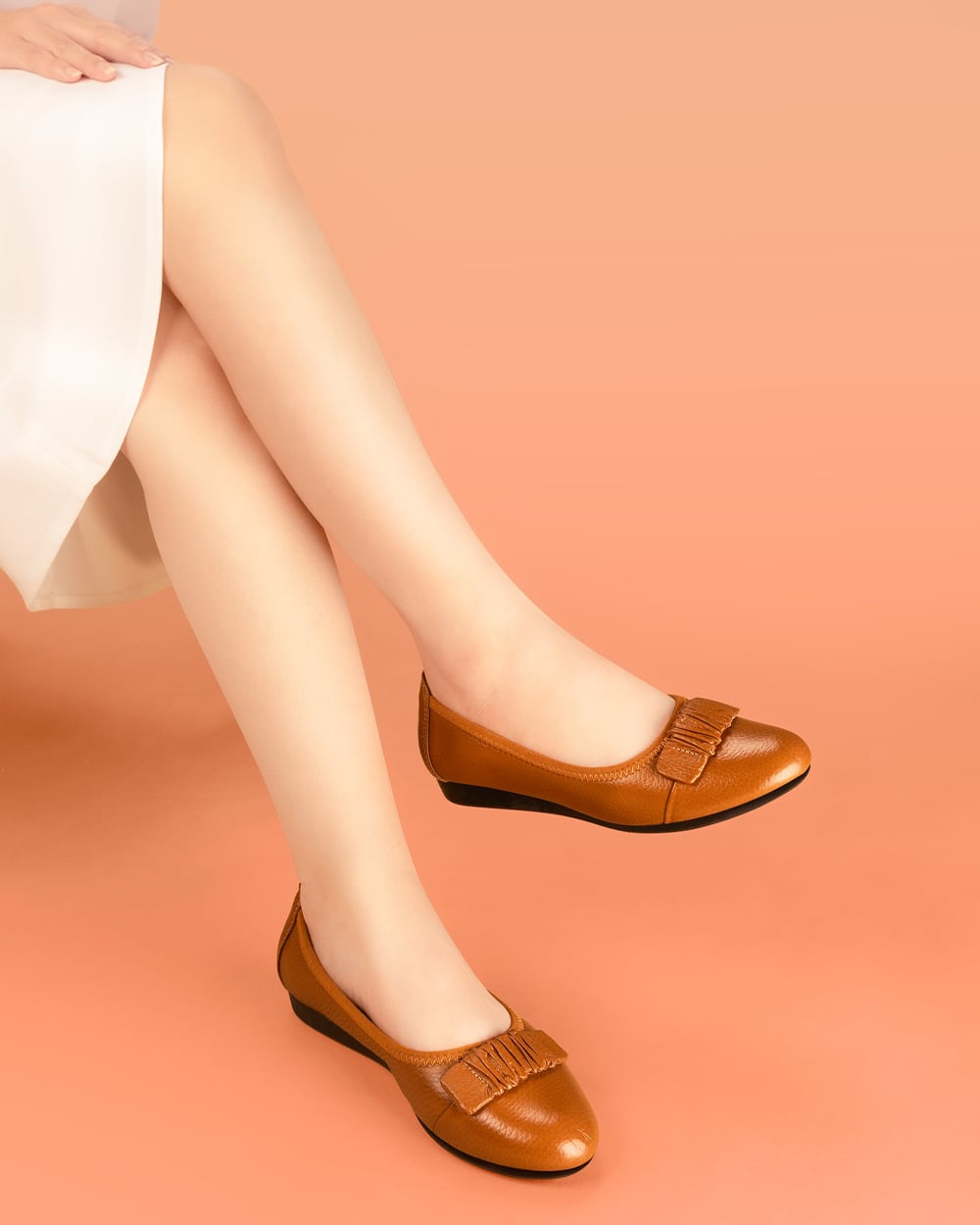 Phần mũi tròn tạo không gian rộng giúp cô nàng có đôi chân đầy kém thon không bị gò bó, thoải mái khi di chuyển, được thiết kế đơn giản với phần mũi trơn gắn thêm nơ hay vài phụ kiện sẽ làm nổi bật hơn những bộ trang phục khi diện cùng.