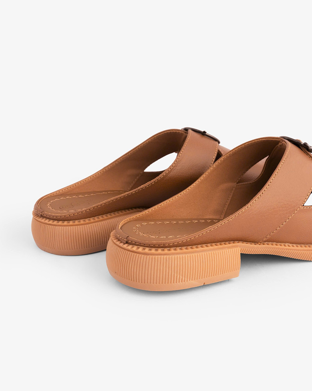 Phần gót thấp, khoảng 2cm, và độ rộng tạo sự vững chắc khi di chuyển. Mặt đế có các rãnh chống trơn trượt.