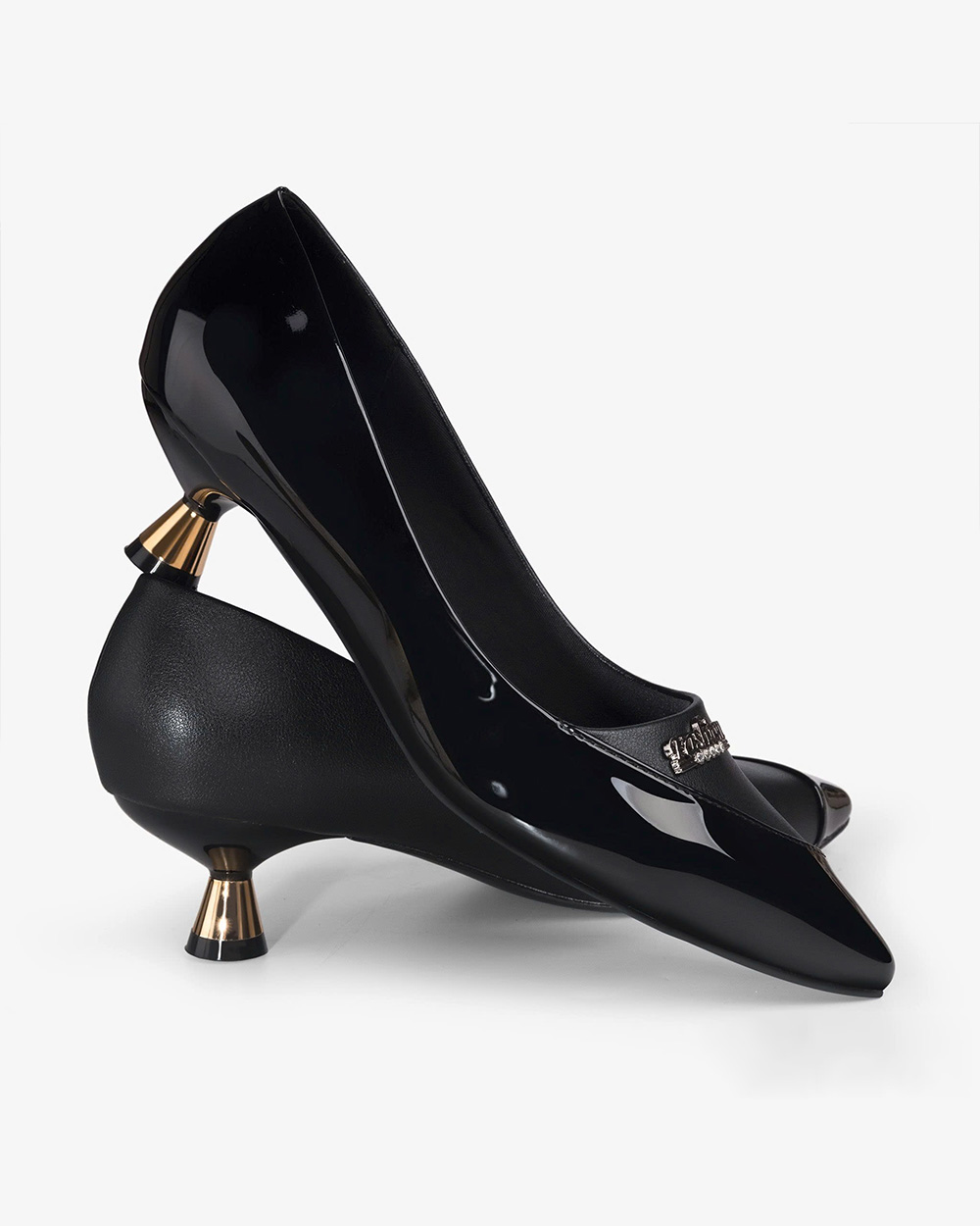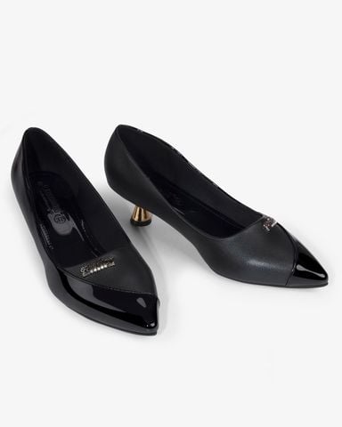 Giày Cao Gót Hạnh Dung Khóa Chữ Gót Vàng HD04983AD
