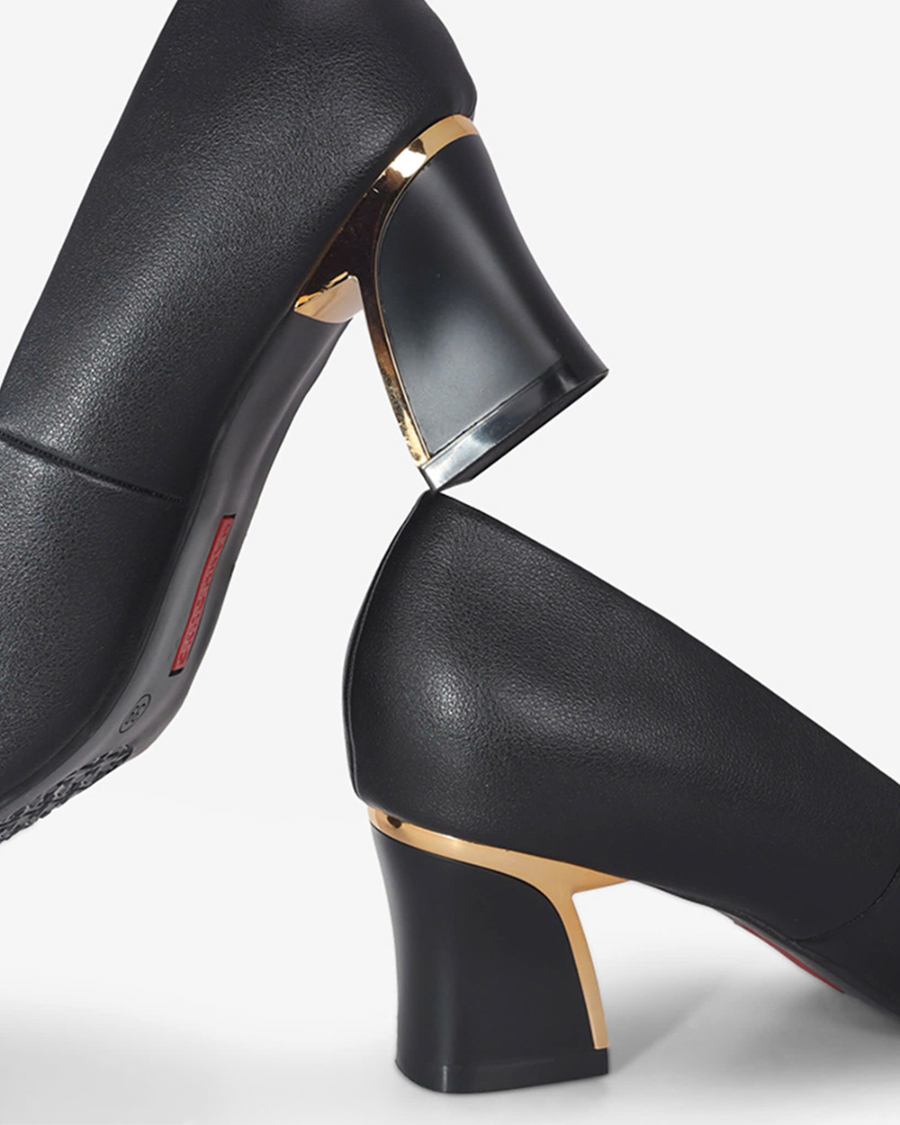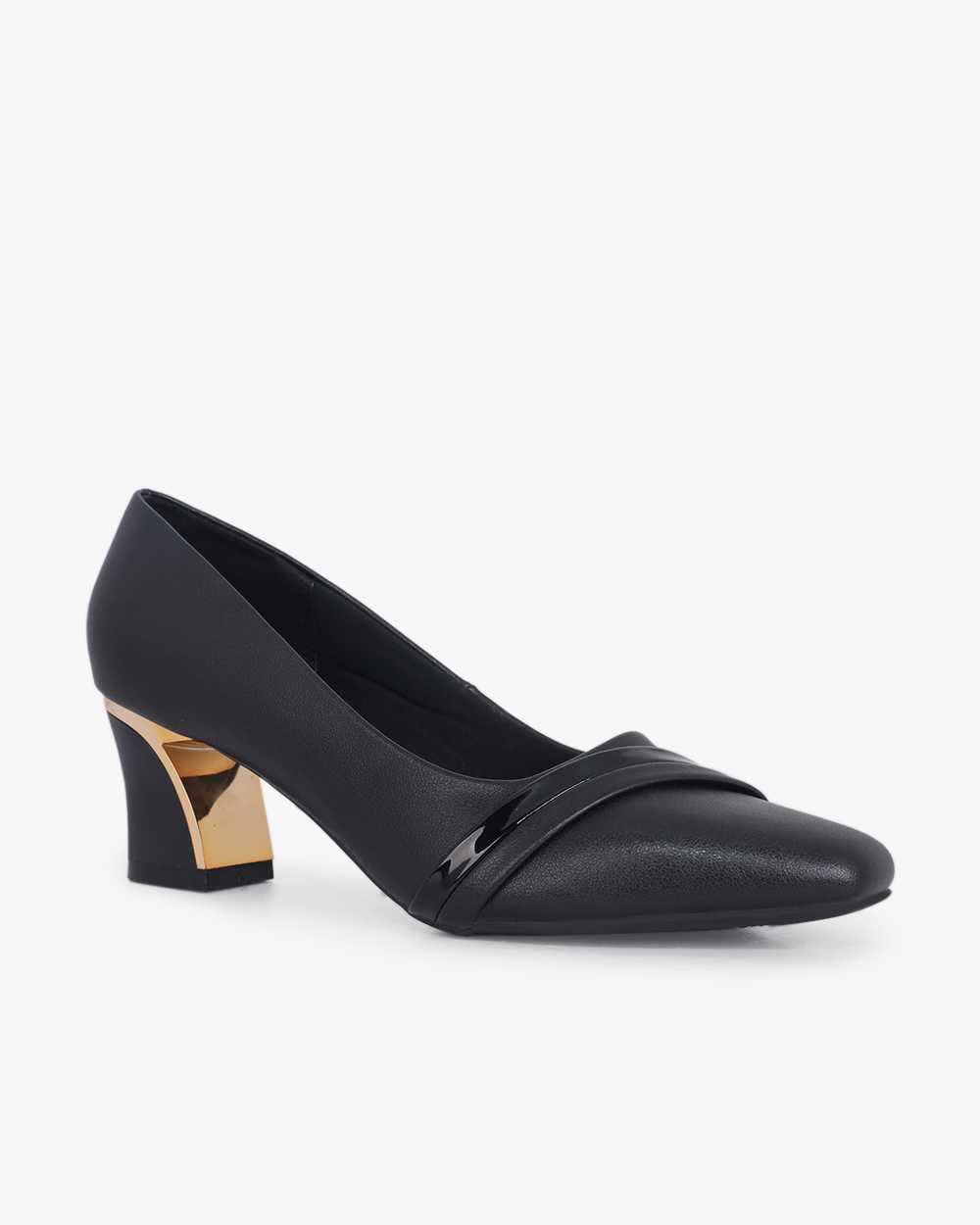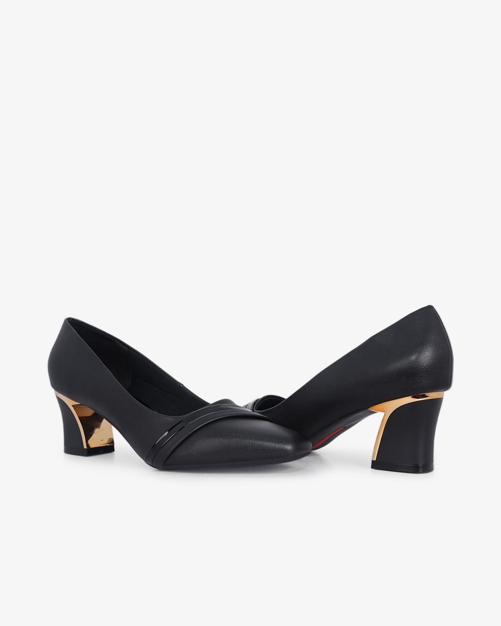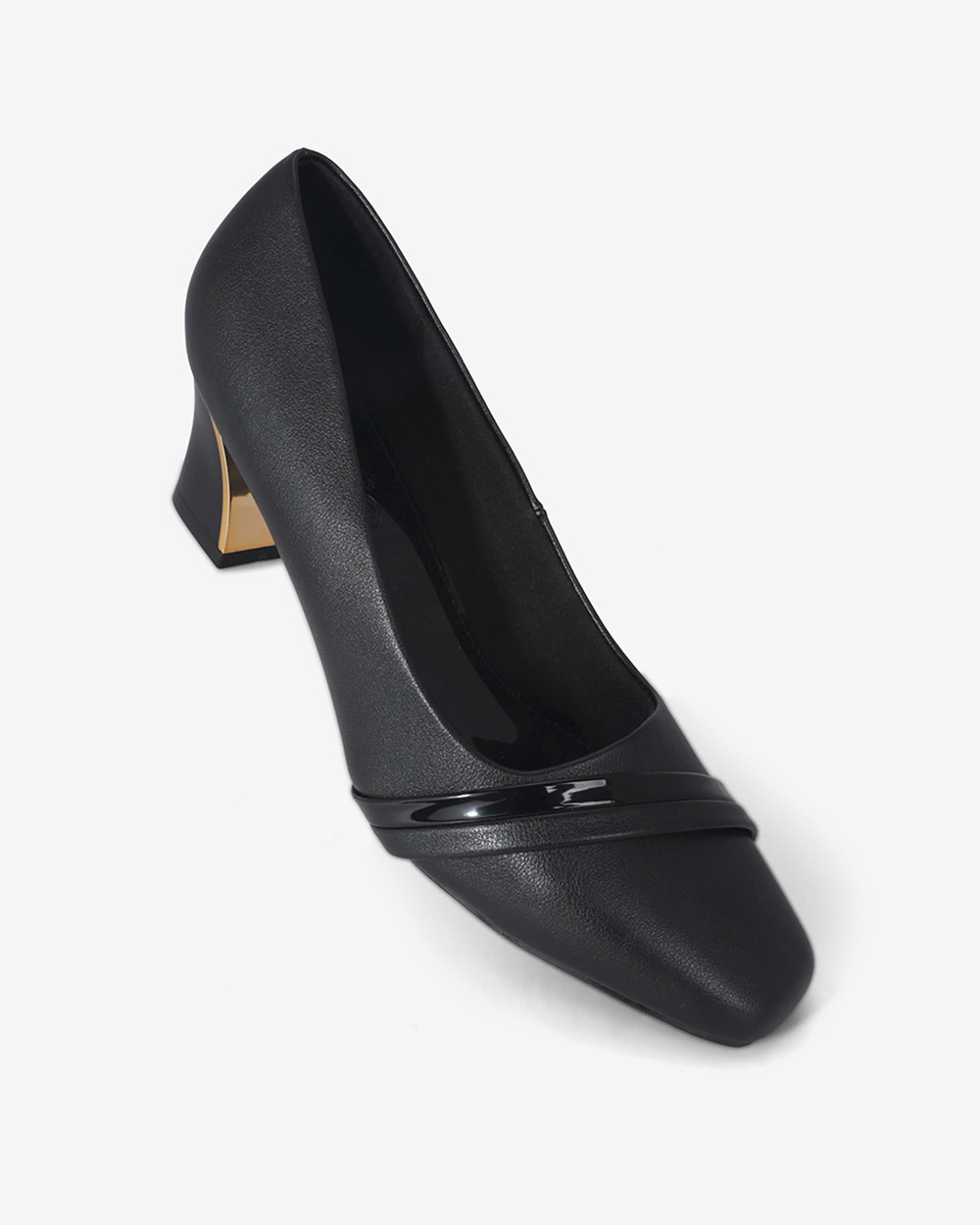 Giày Cao Gót Hạnh Dung Mũi Vuông Gót Viền Vàng HD04988AD