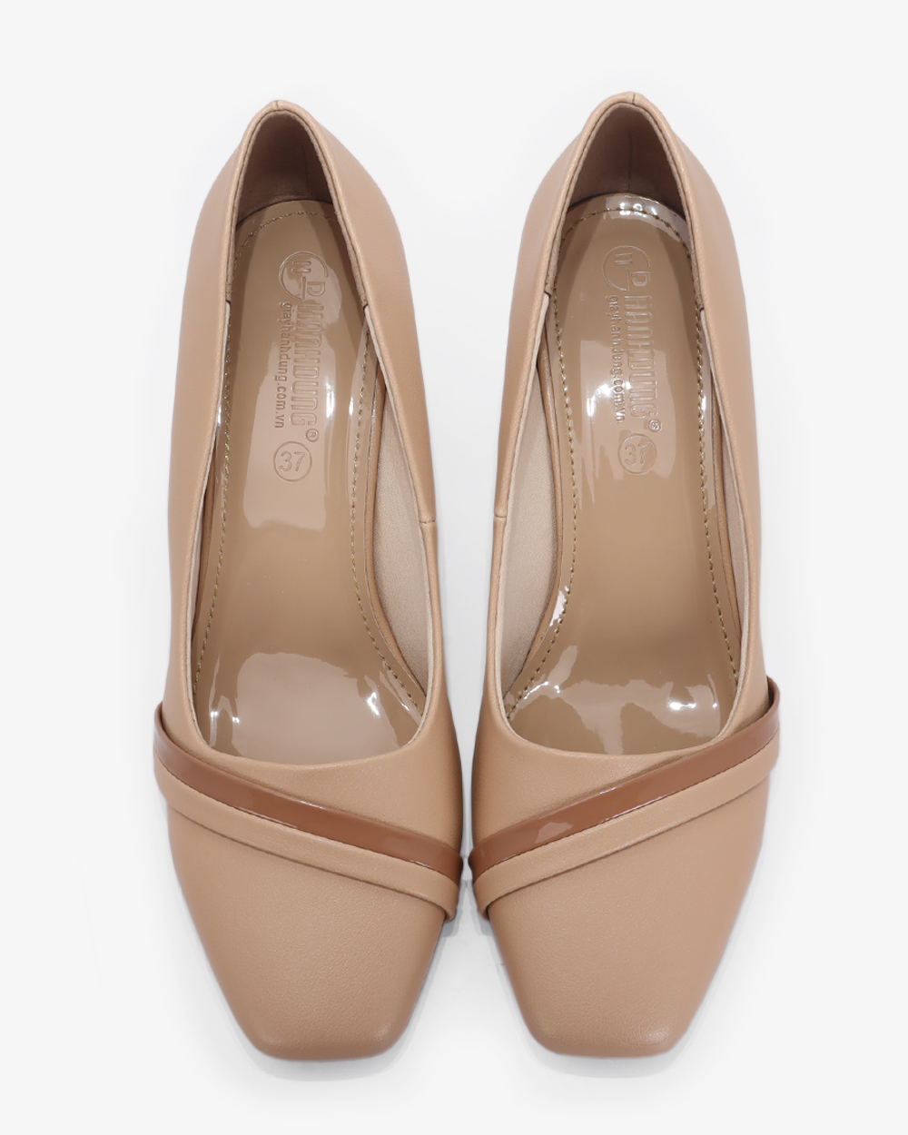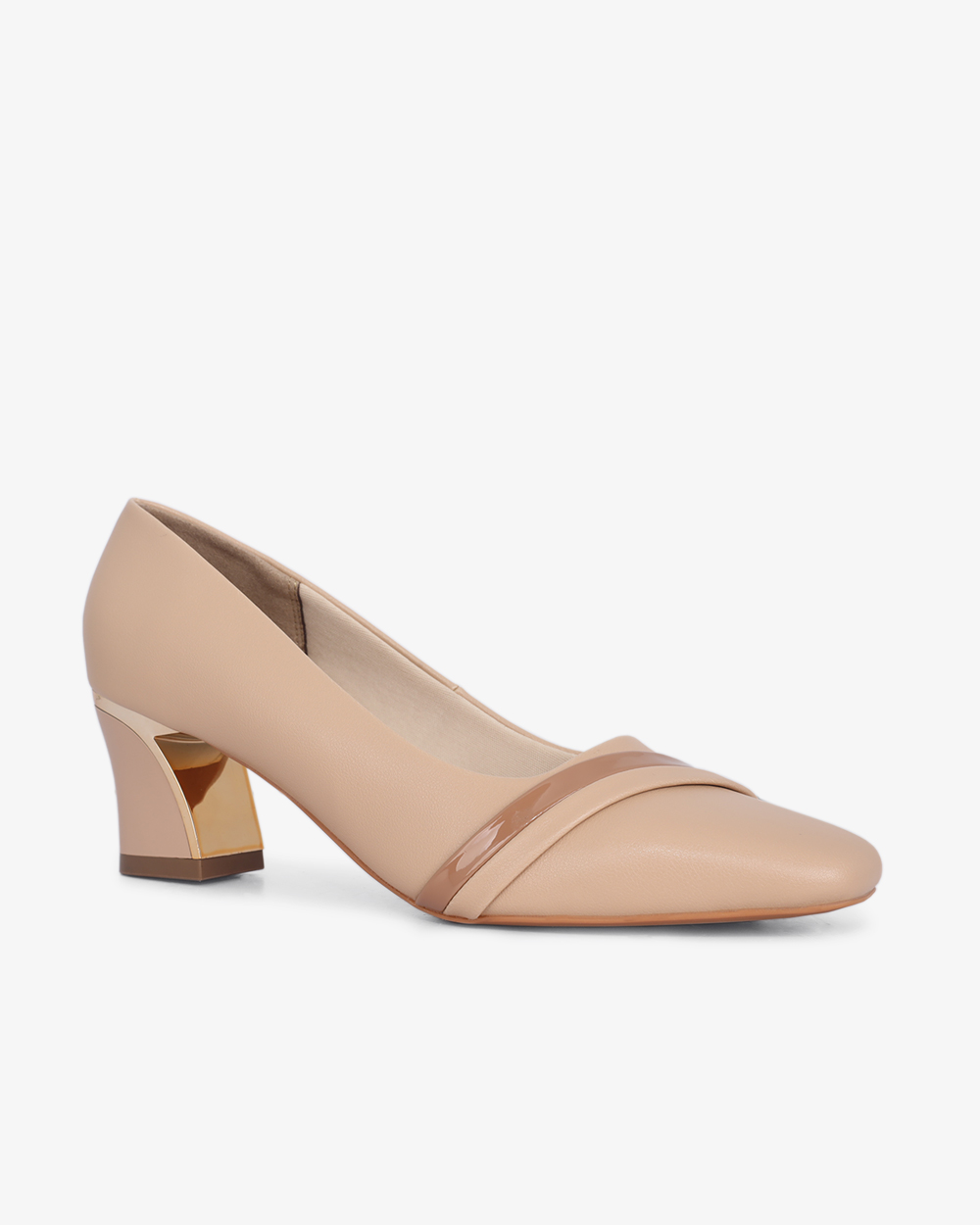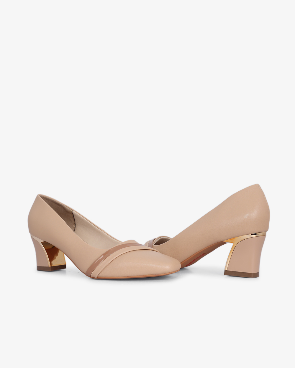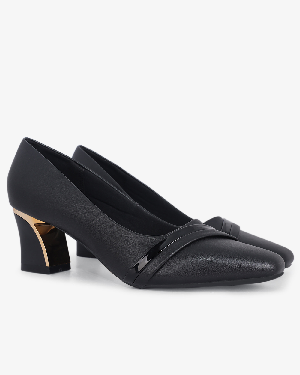 Giày Cao Gót Hạnh Dung Mũi Vuông Gót Viền Vàng HD04988AD
