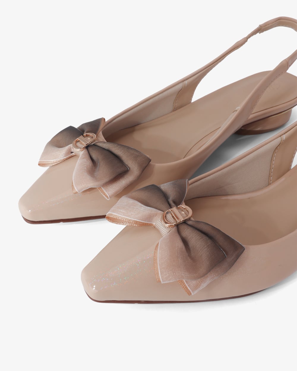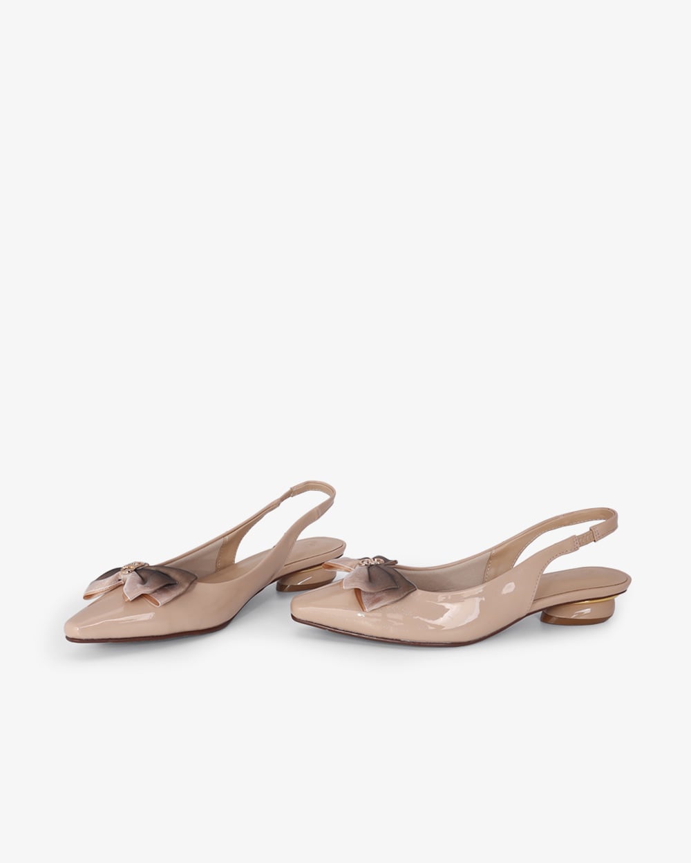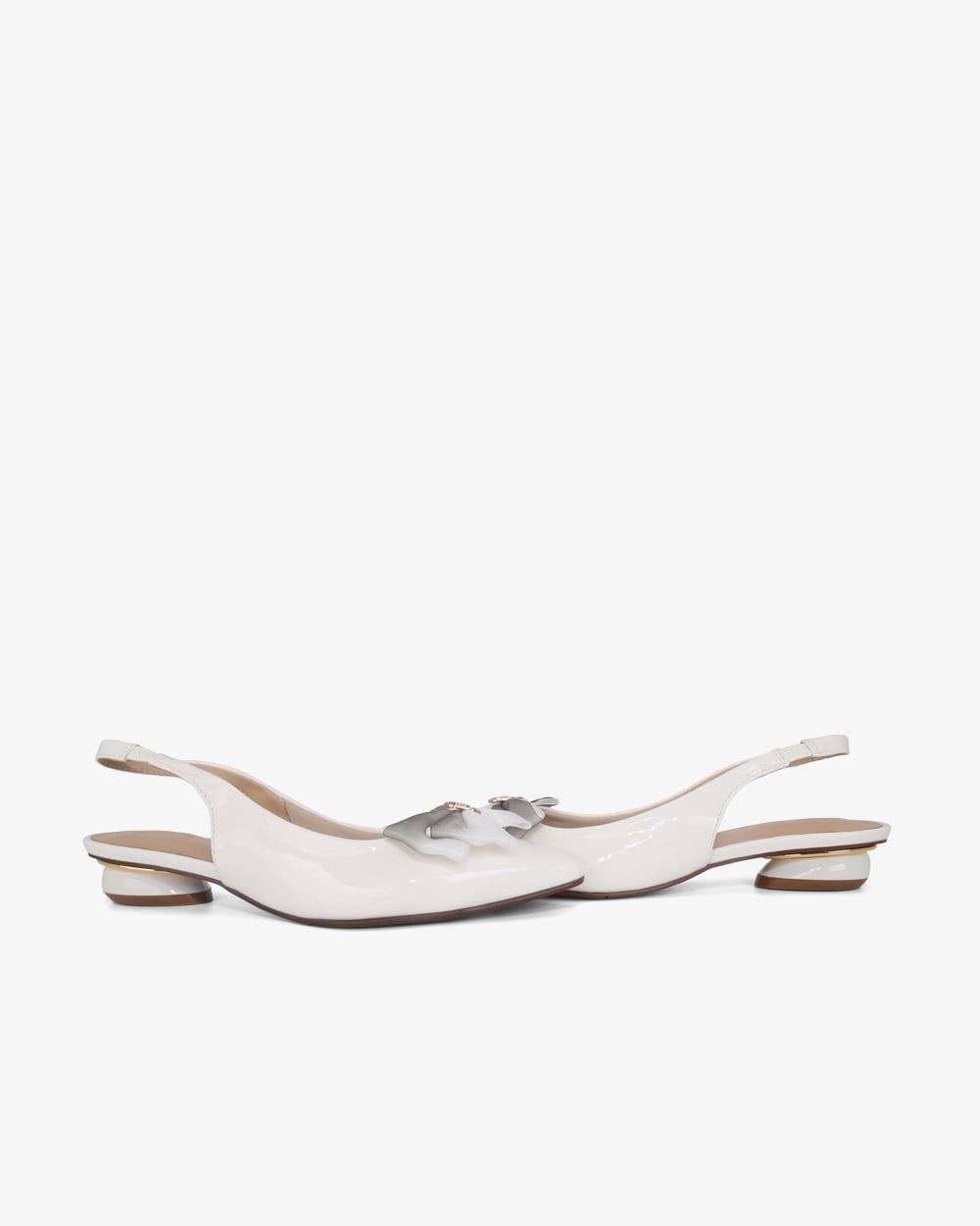 Gót thấp 3cm dễ chịu. Mặt đế có các rãnh chống trơn trượt, giữ chân chắc chắn mà vẫn thoải mái.
