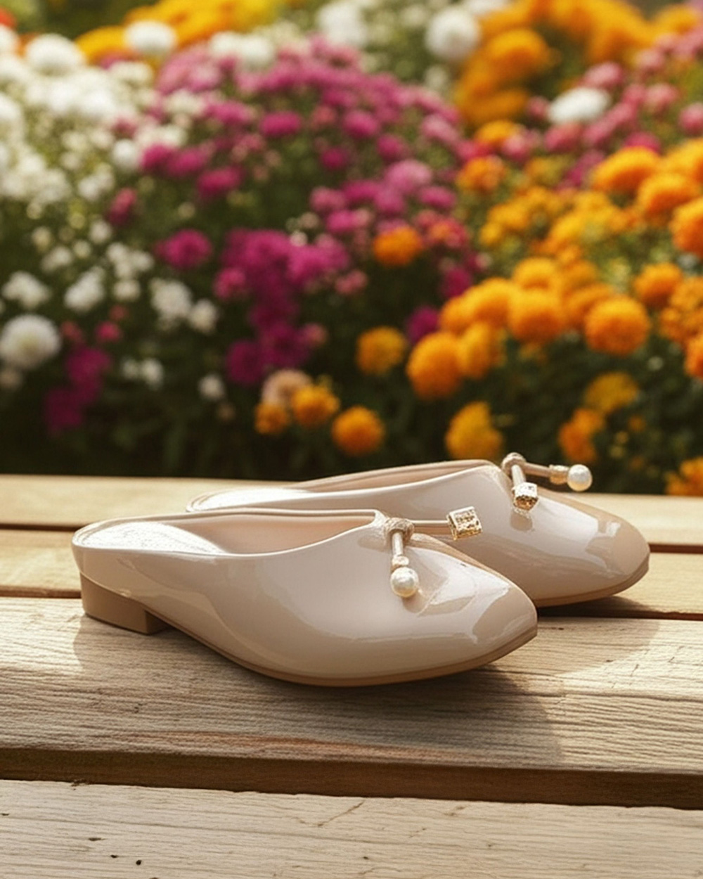 Đôi dép không có quai sau, giúp dễ dàng xỏ vào và tháo ra, rất tiện lợi mà vẫn giữ được phong cách thanh lịch.