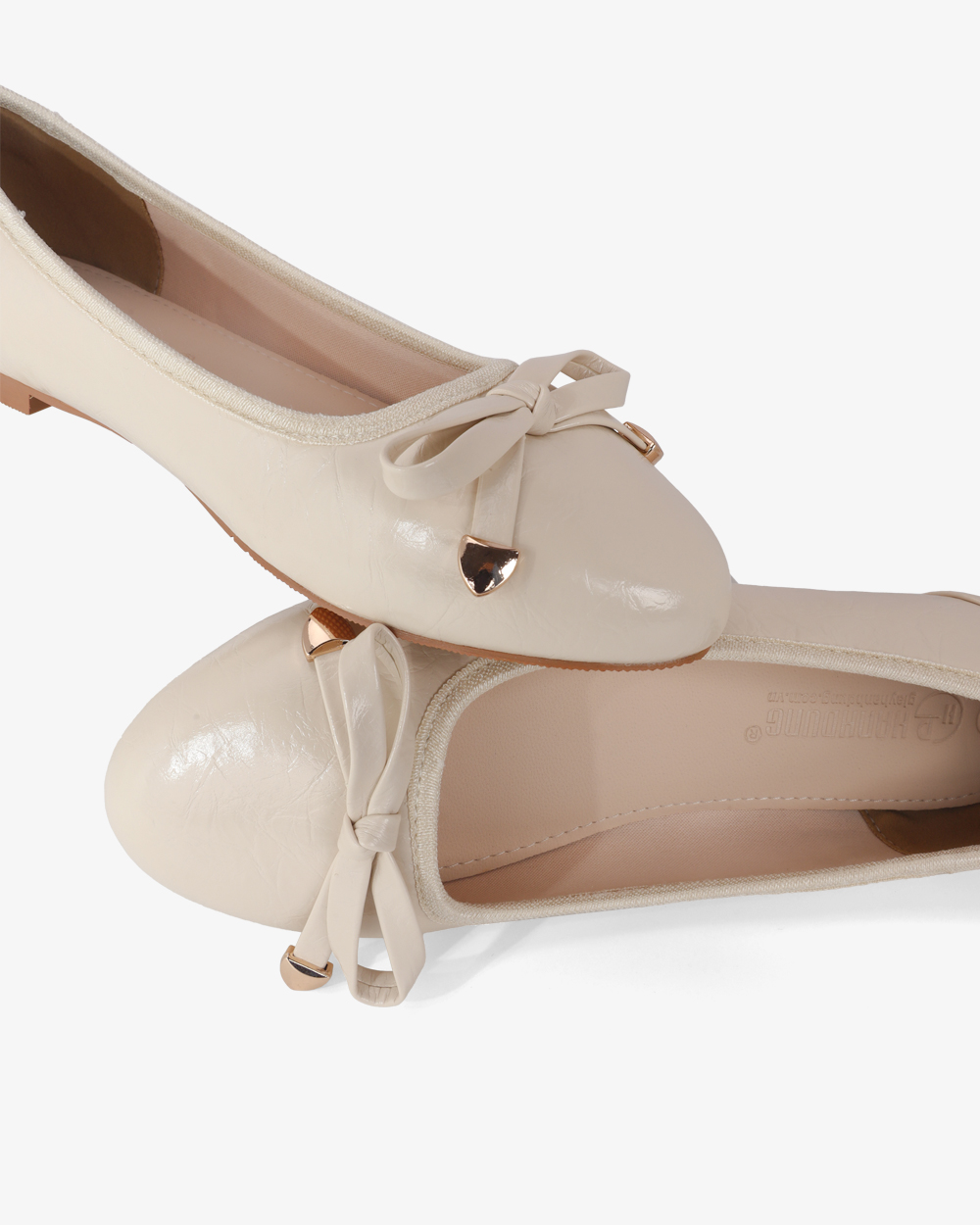 Giày Búp Bê Hạnh Dung Nơ Nút Mạ Vàng HD0936AS