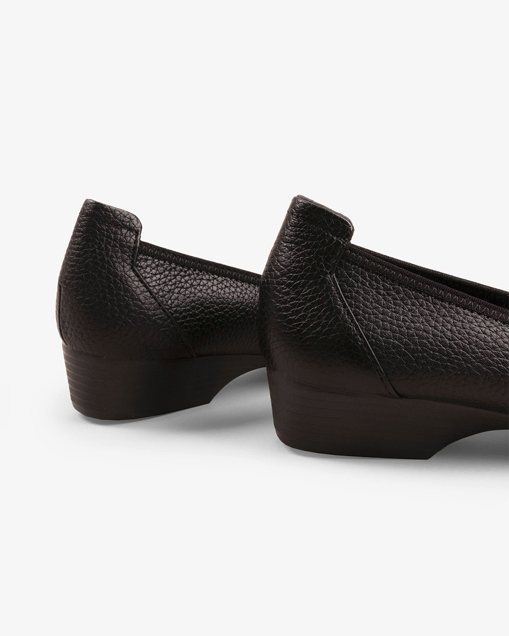 Gót cao nhẹ 3cm vững chắc. Mặt đế có các rãnh chống trơn trượt, giữ chân chắc chắn mà vẫn thoải mái.