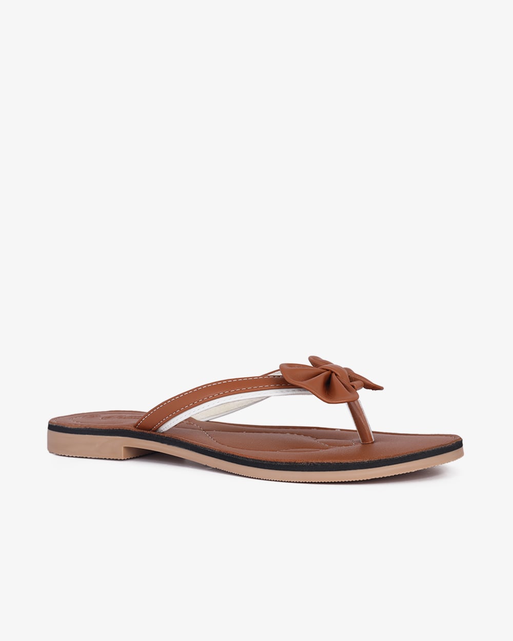 Dép xẹp này được thiết kế với họa tiết nơ xinh. Đầy khéo léo và tinh tế tôn lên vóc dáng của nàng.