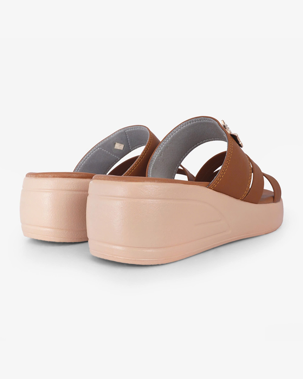 Đôi dép đế xuồng với kiểu dáng nhẹ nhàng, nữ tính, thiết kế quai chéo sang trọng, thích hợp cho những ai yêu thích phong cách diệu dàng, điệu đà