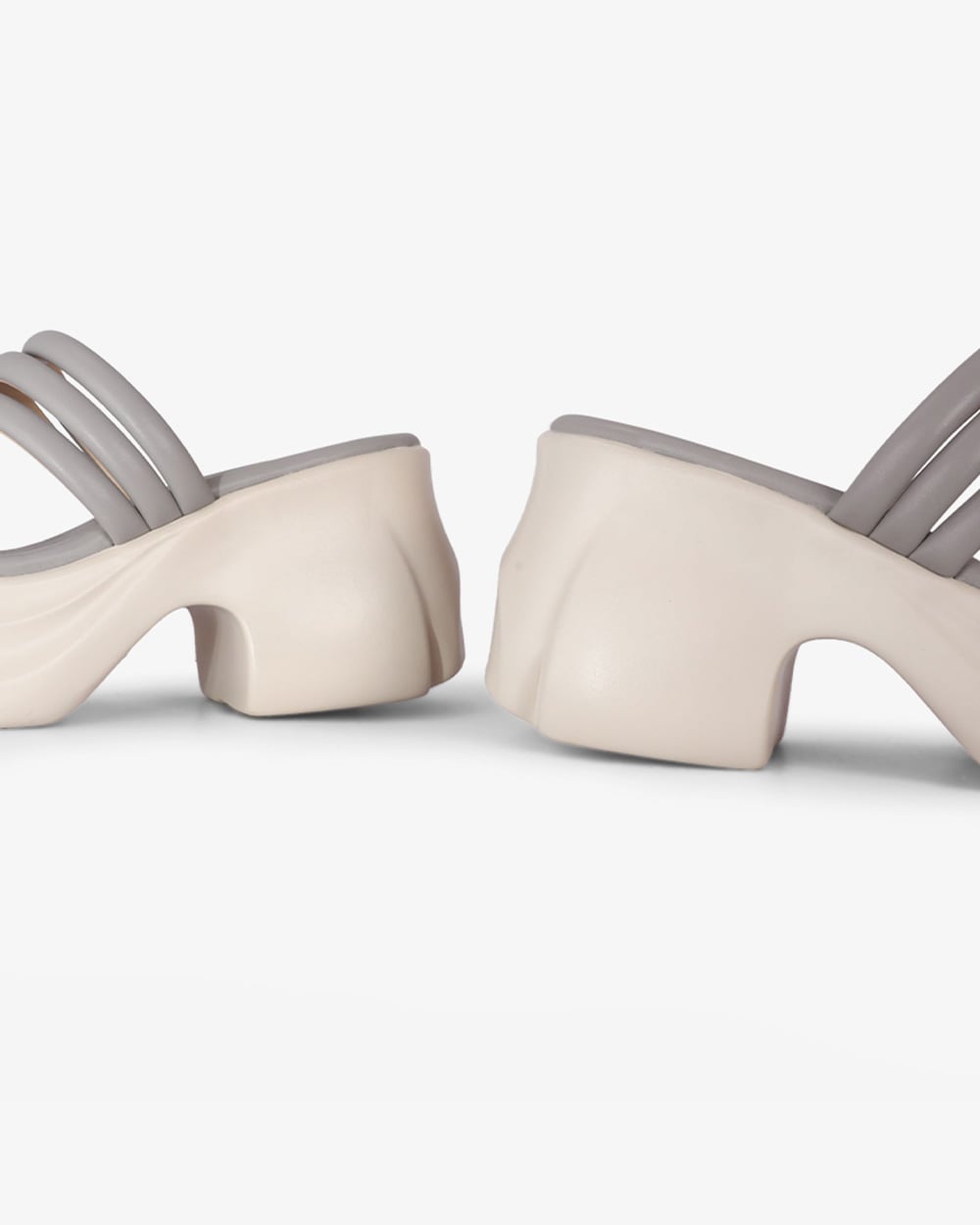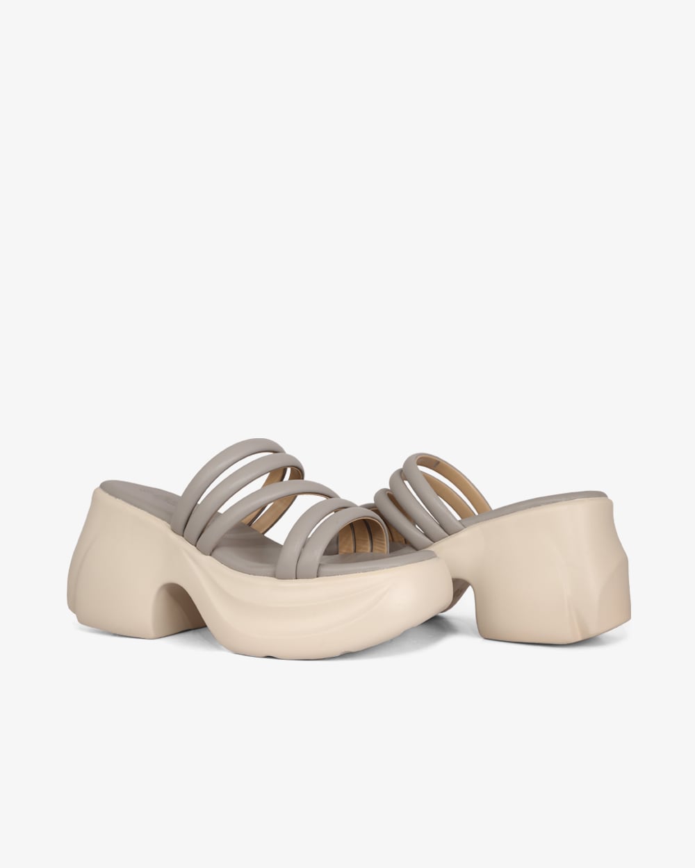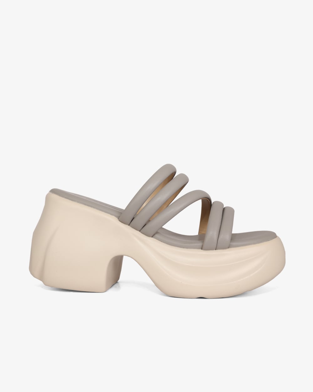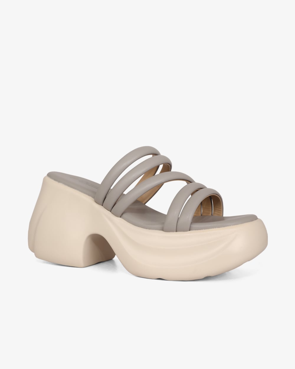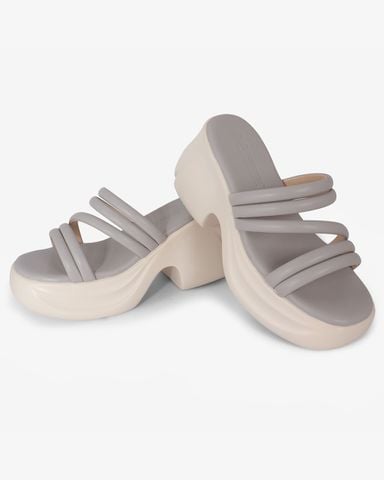 Gót cao 10cm dạng trụ vững chắc. Mặt đế có các rãnh chống trơn trượt, giữ chân chắc chắn mà vẫn thoải mái.