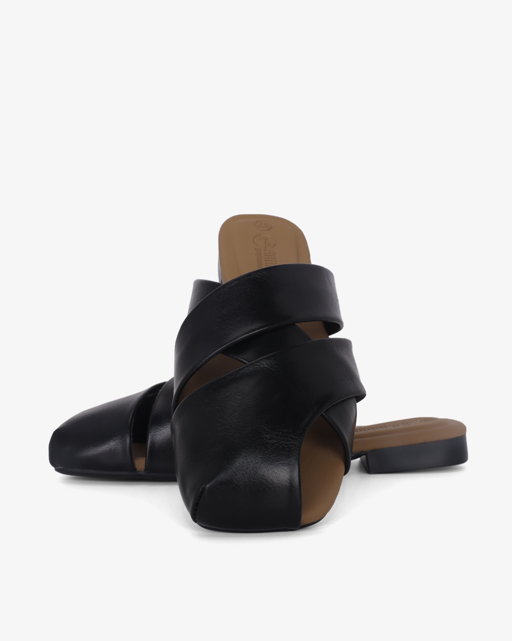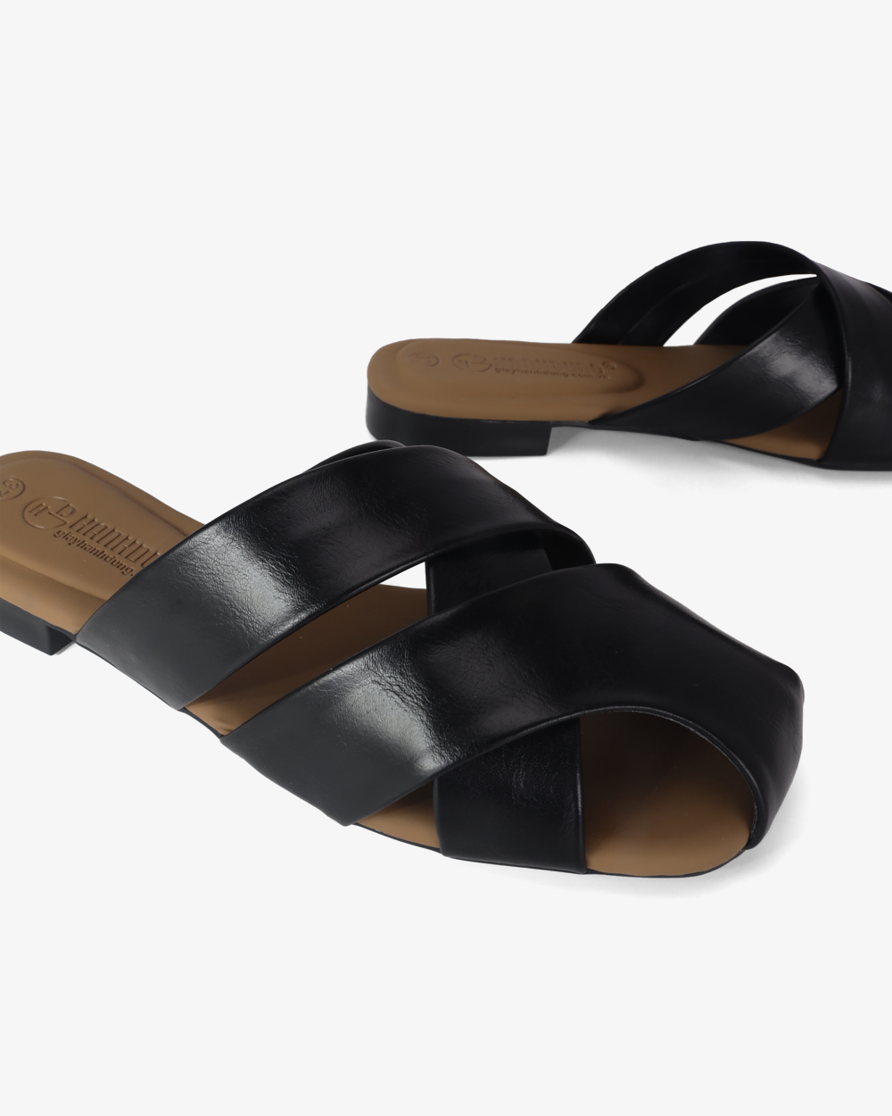 Đôi dép không có quai sau, giúp dễ dàng xỏ vào và tháo ra, rất tiện lợi mà vẫn giữ được phong cách thanh lịch.