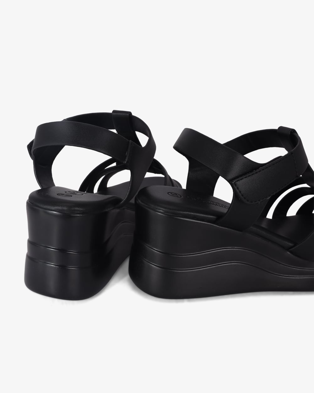 Đôi sandal đế xuồng với kiểu dáng mạnh mẽ, tự tin, tạo sự thoải mái nhưng vẫn đảm bảo được nét thanh lịch cho bạn. Quai chéo sang trọng, thích hợp cho những ai có lối sống năng động.