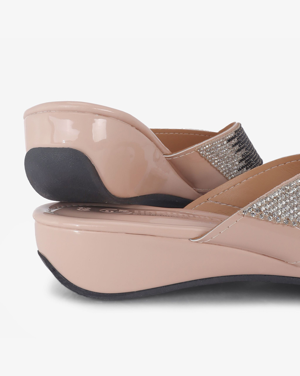 Gót cao 3 cm dạng trụ vững chắc. Mặt đế có các rãnh chống trơn trượt, giữ chân chắc chắn mà vẫn thoải mái.