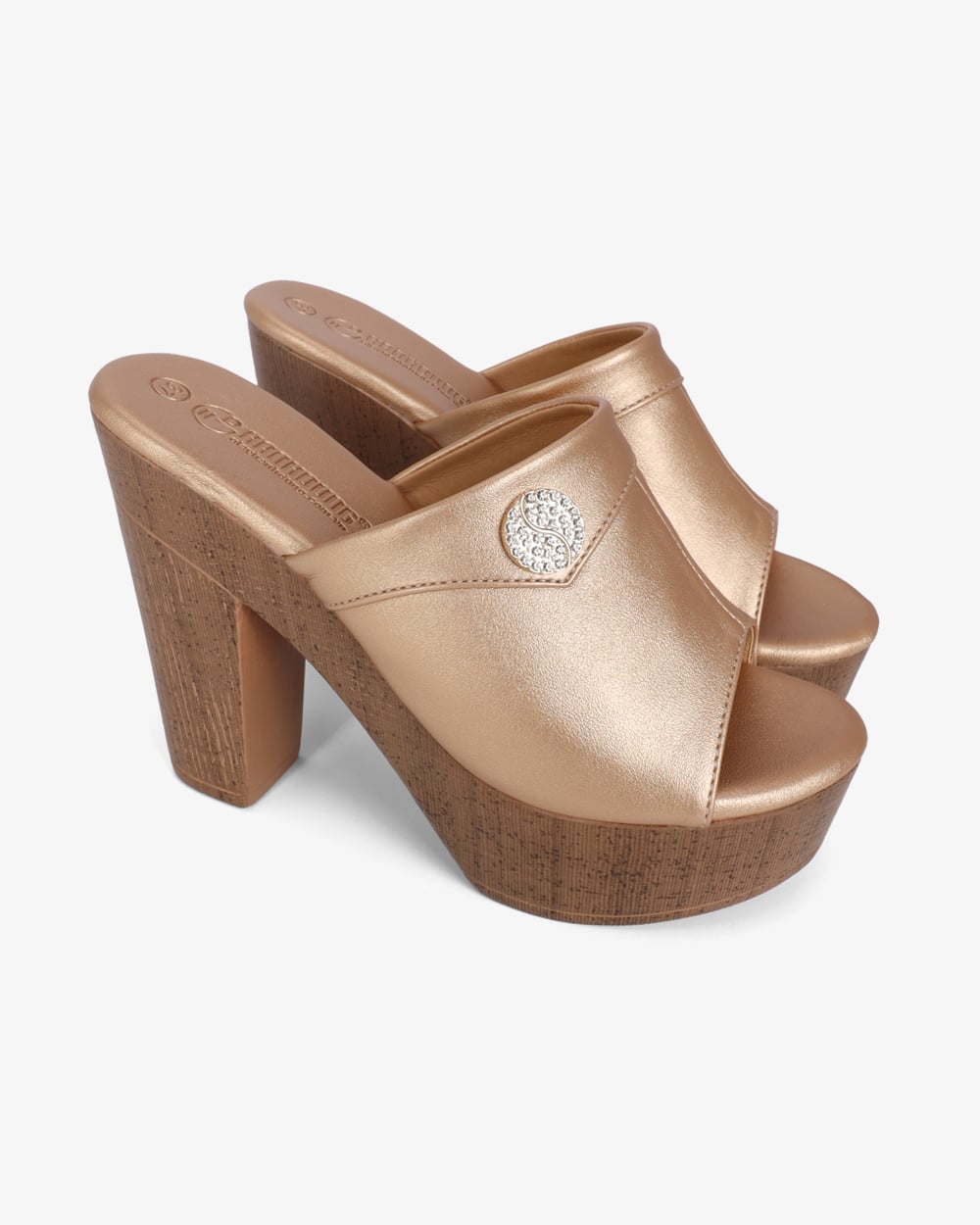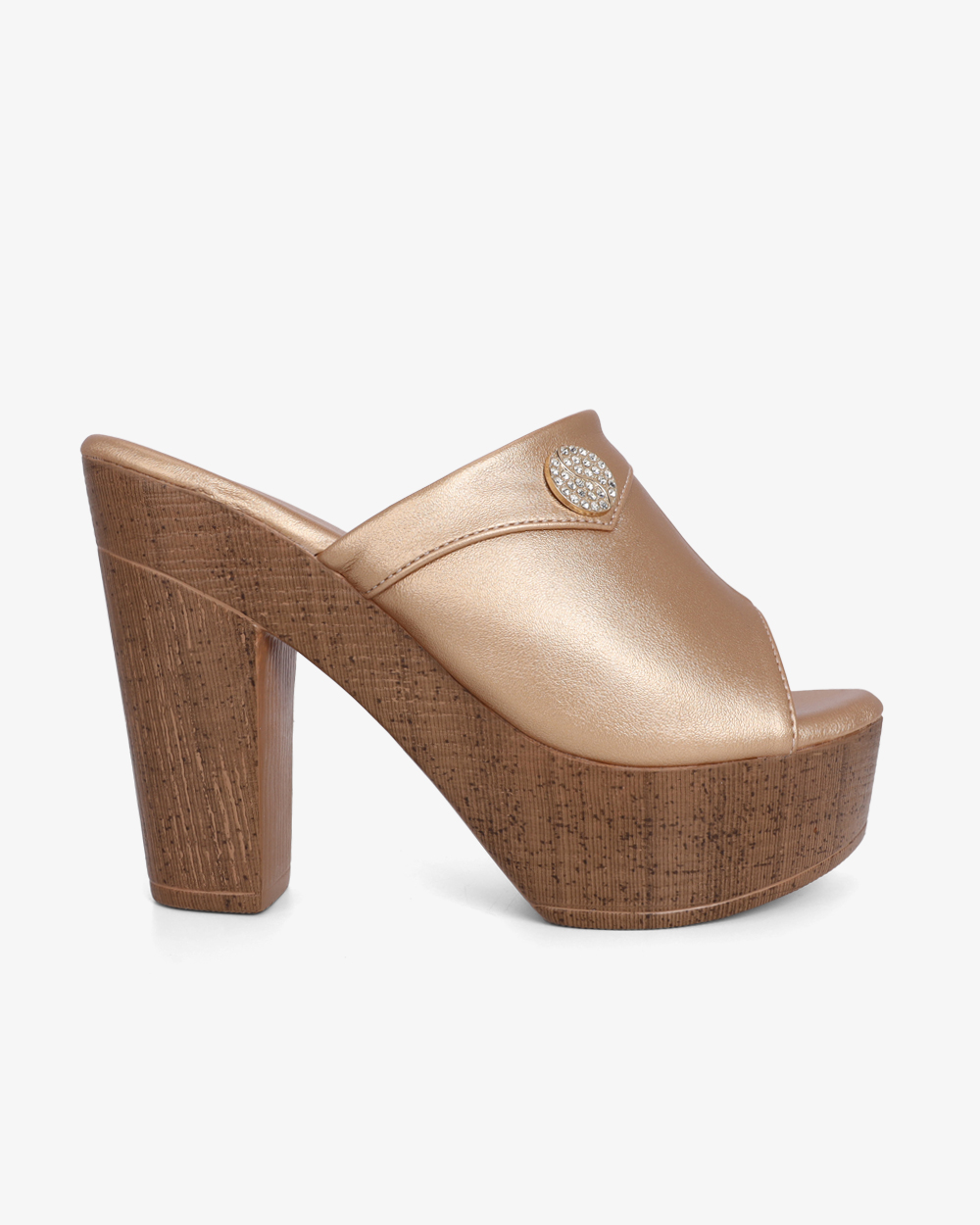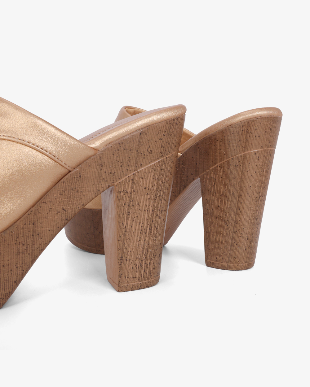 Gót cao 10cm dạng trụ vững chắc. Mặt đế có các rãnh chống trơn trượt, giữ chân chắc chắn mà vẫn thoải mái.