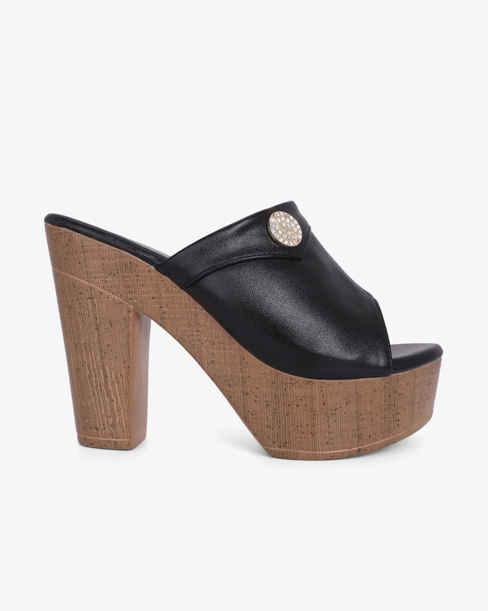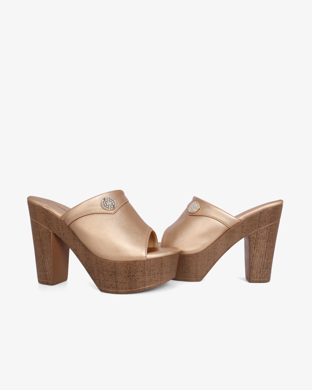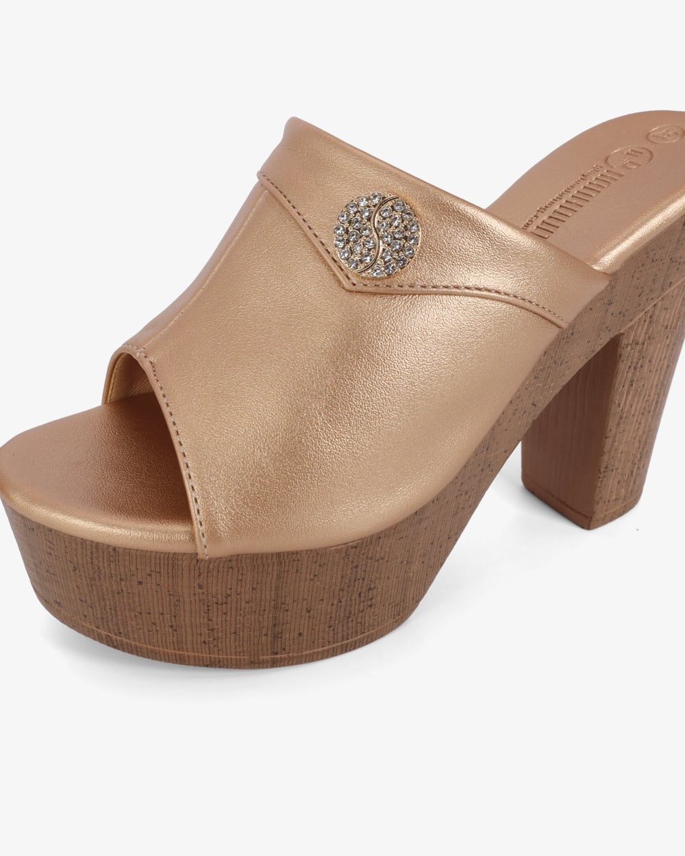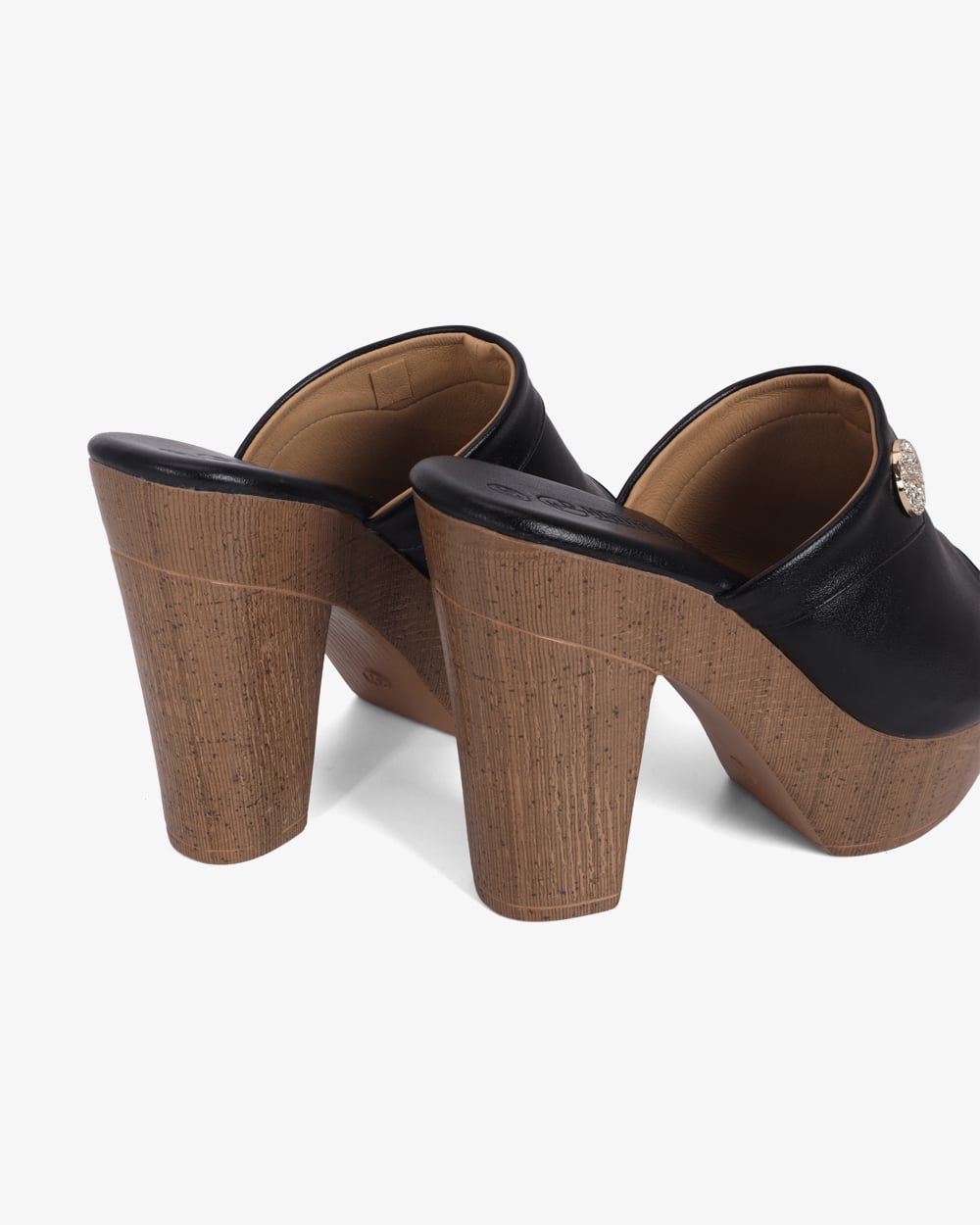 Gót cao 10cm dạng trụ vững chắc. Mặt đế có các rãnh chống trơn trượt, giữ chân chắc chắn mà vẫn thoải mái.