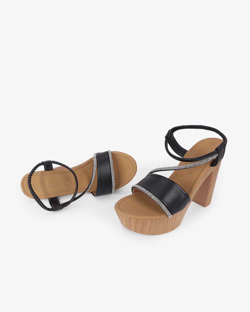 Đôi sandal cao gót với kiểu dáng nhẹ nhàng, nữ tính, thiết kế quai chéo sang trọng, thích hợp cho những ai yêu thích phong cách diệu dàng, điệu đà