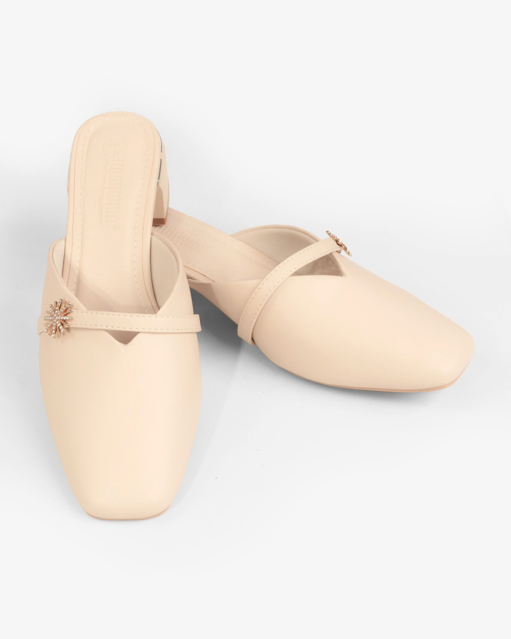 Dép Bít Mũi Hạnh Dung Mũi Vuông Đính Hoa Tuyết HD27290BI