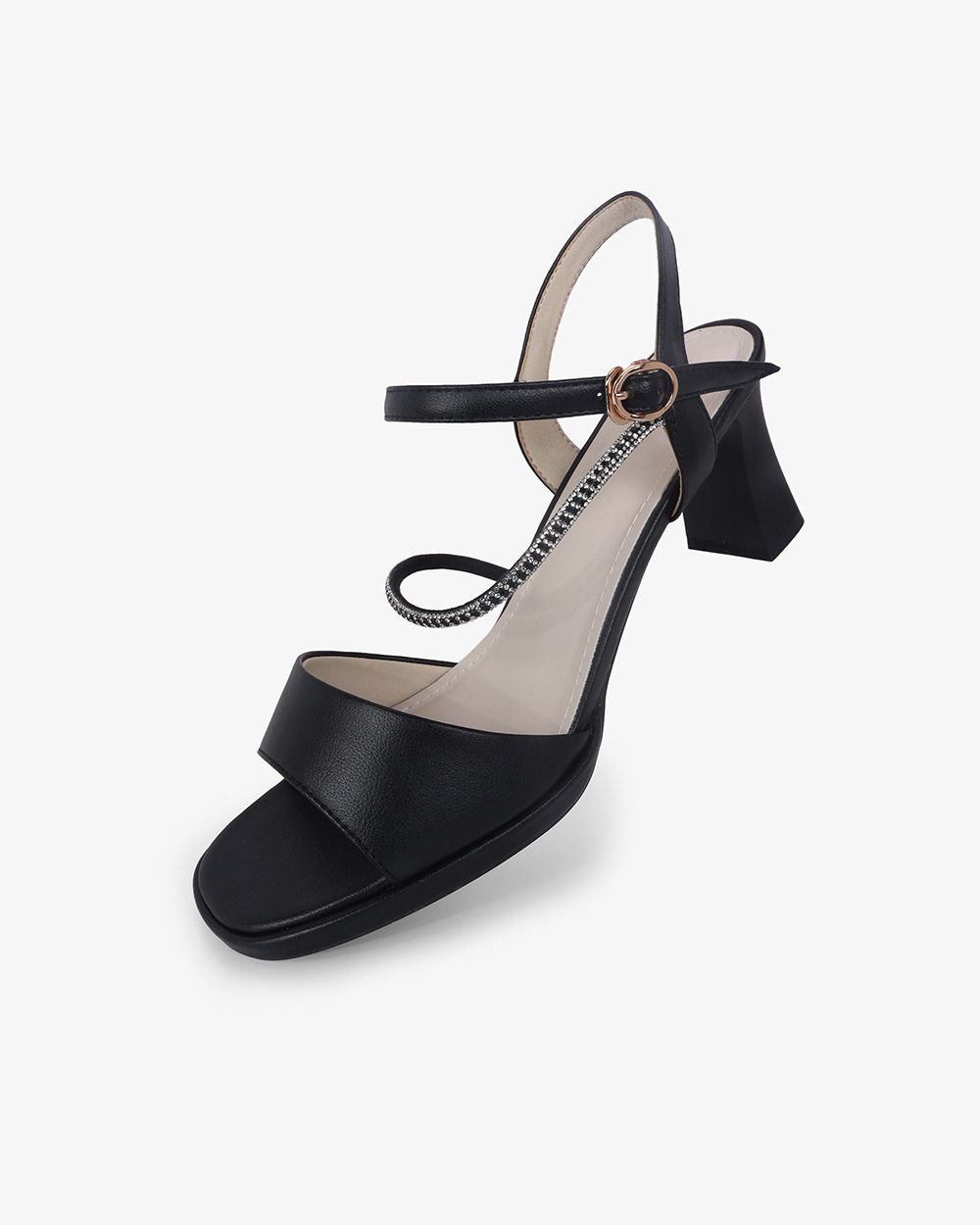 Sandal Cao Gót Hạnh Dung Quai Ngang Dây Xoàn Mảnh HD27309BI KHUYẾN MÃI - ƯU ĐÃI