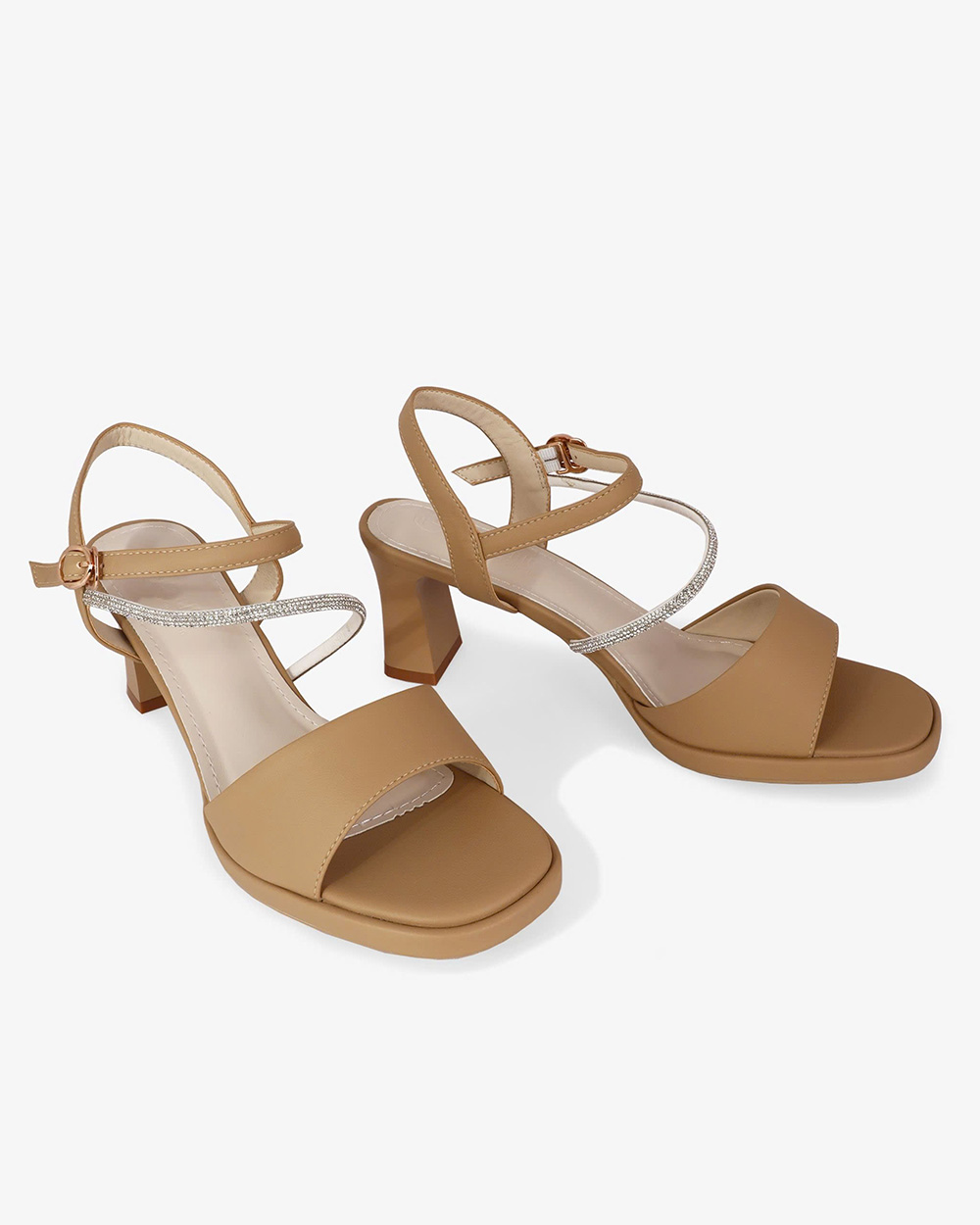 Đôi sandal cao gót với kiểu dáng nhẹ nhàng, nữ tính, thiết kế quai chéo sang trọng, thích hợp cho những ai yêu thích phong cách diệu dàng, điệu đà