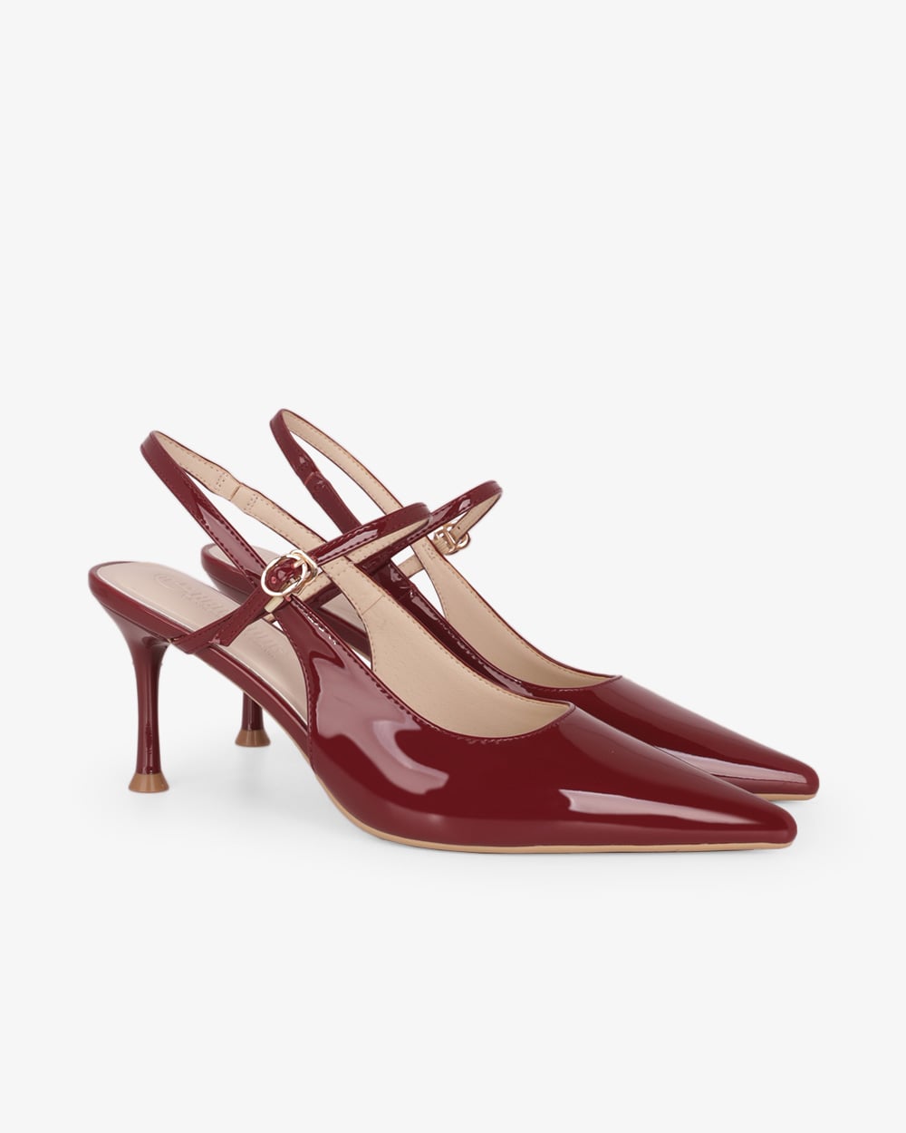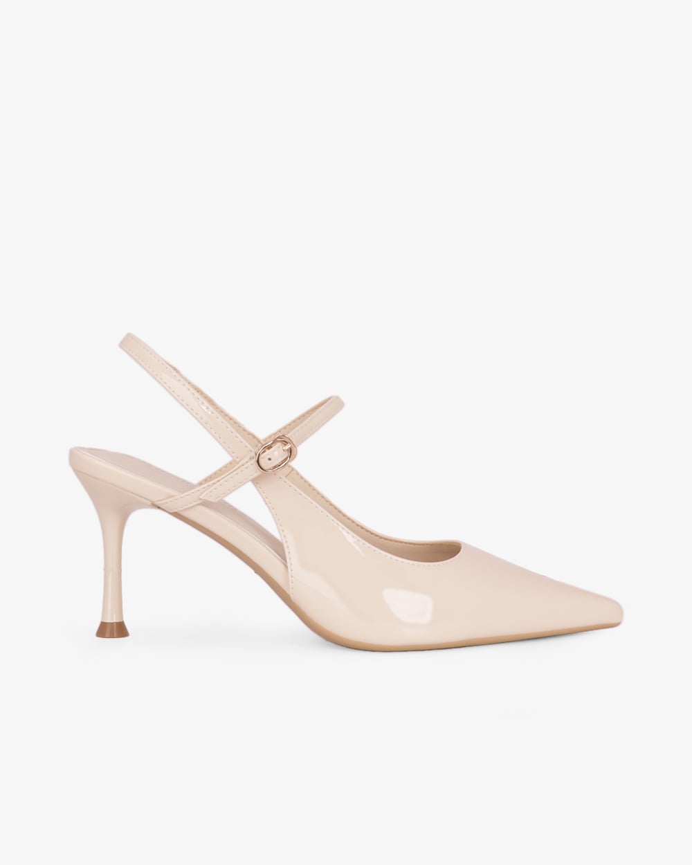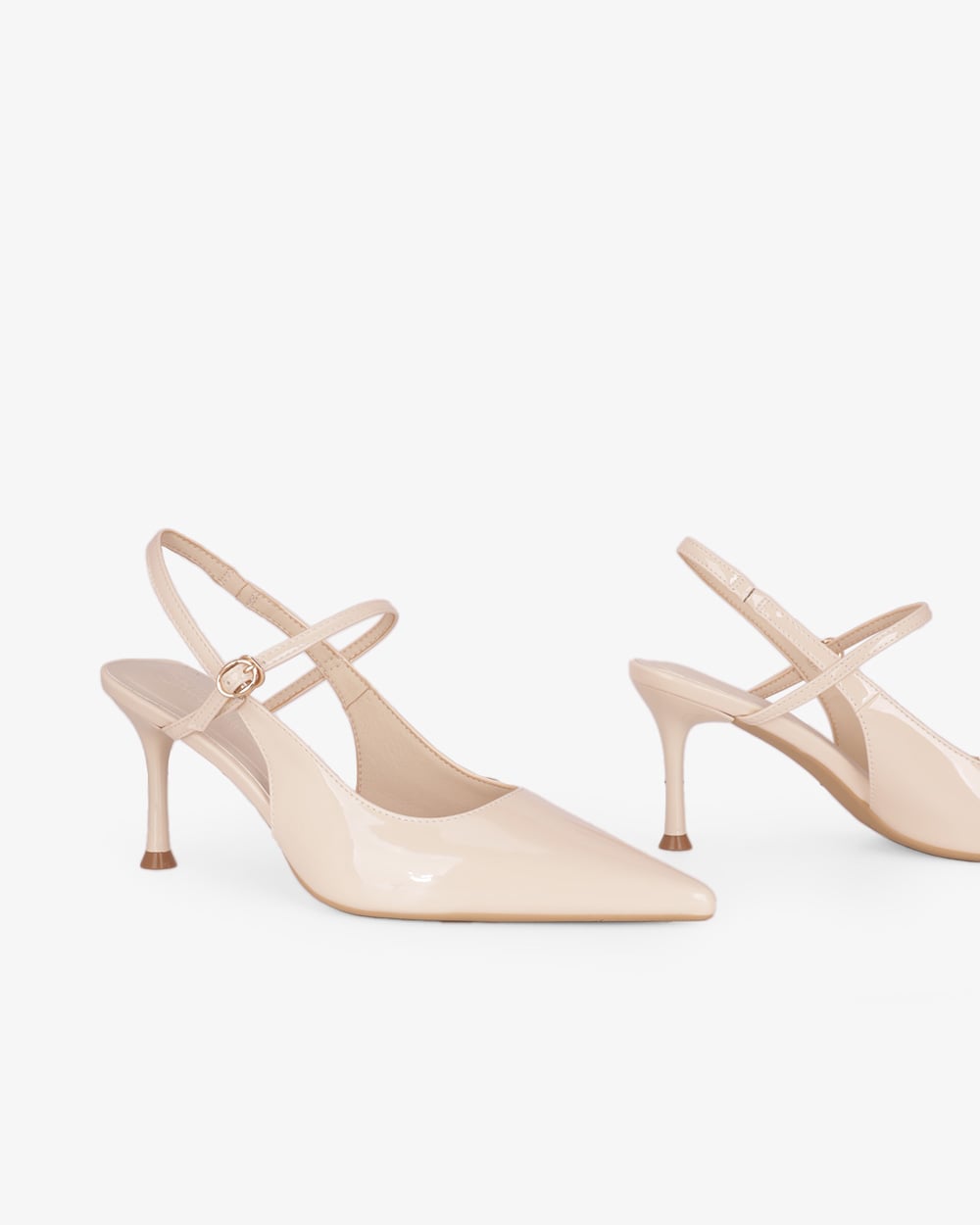 Gót cao 8cm dạng trụ vững chắc. Mặt đế có các rãnh chống trơn trượt, giữ chân chắc chắn mà vẫn thoải mái.
