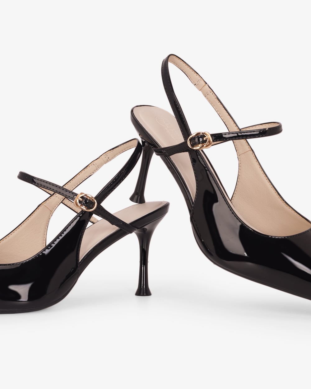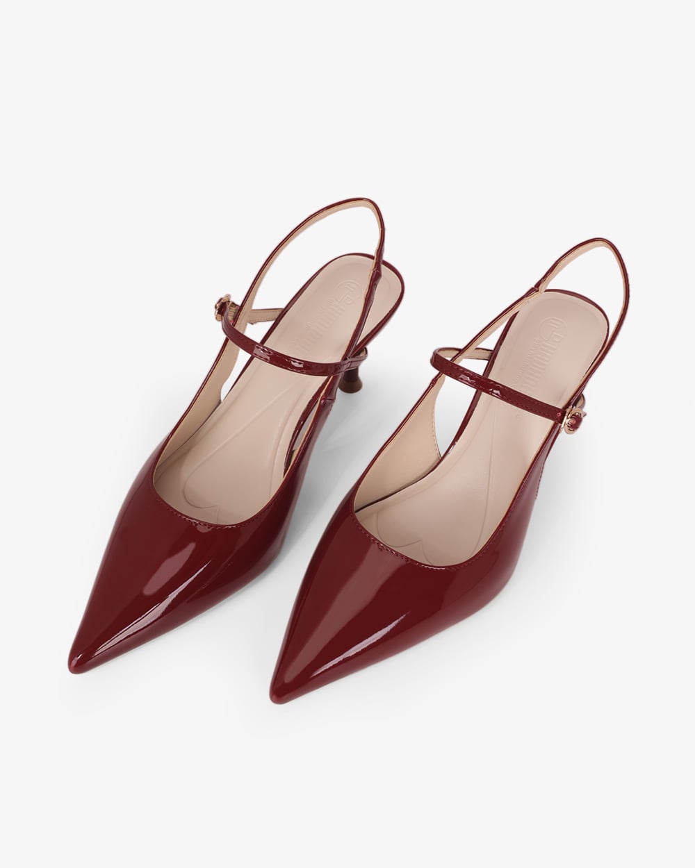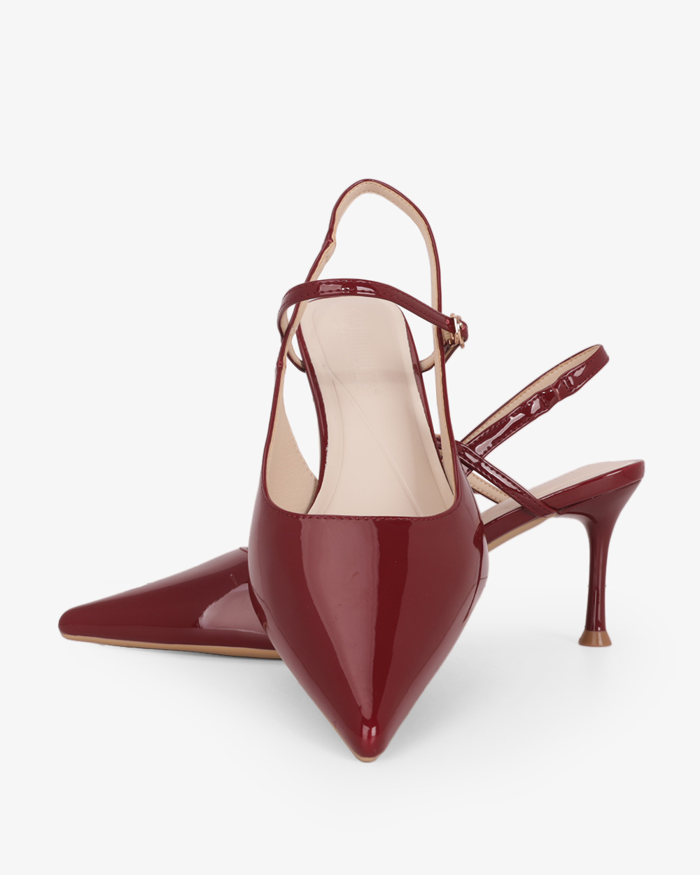 Gót cao 8cm dạng trụ vững chắc. Mặt đế có các rãnh chống trơn trượt, giữ chân chắc chắn mà vẫn thoải mái.