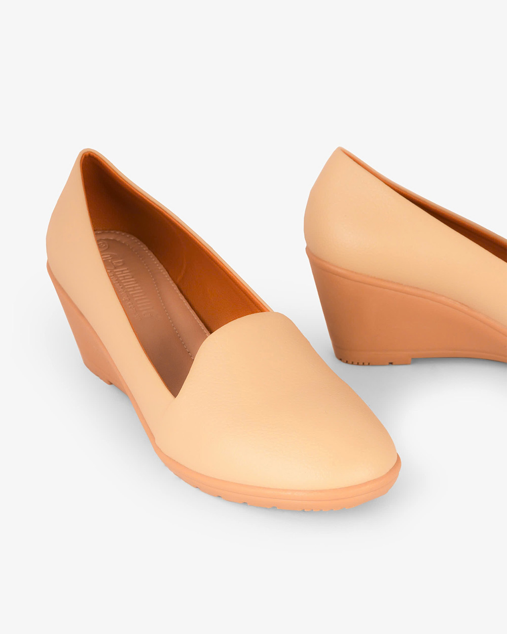 Giày Đế Xuồng Hạnh Dung Mũi Tròn Da Trơn HD29165AY